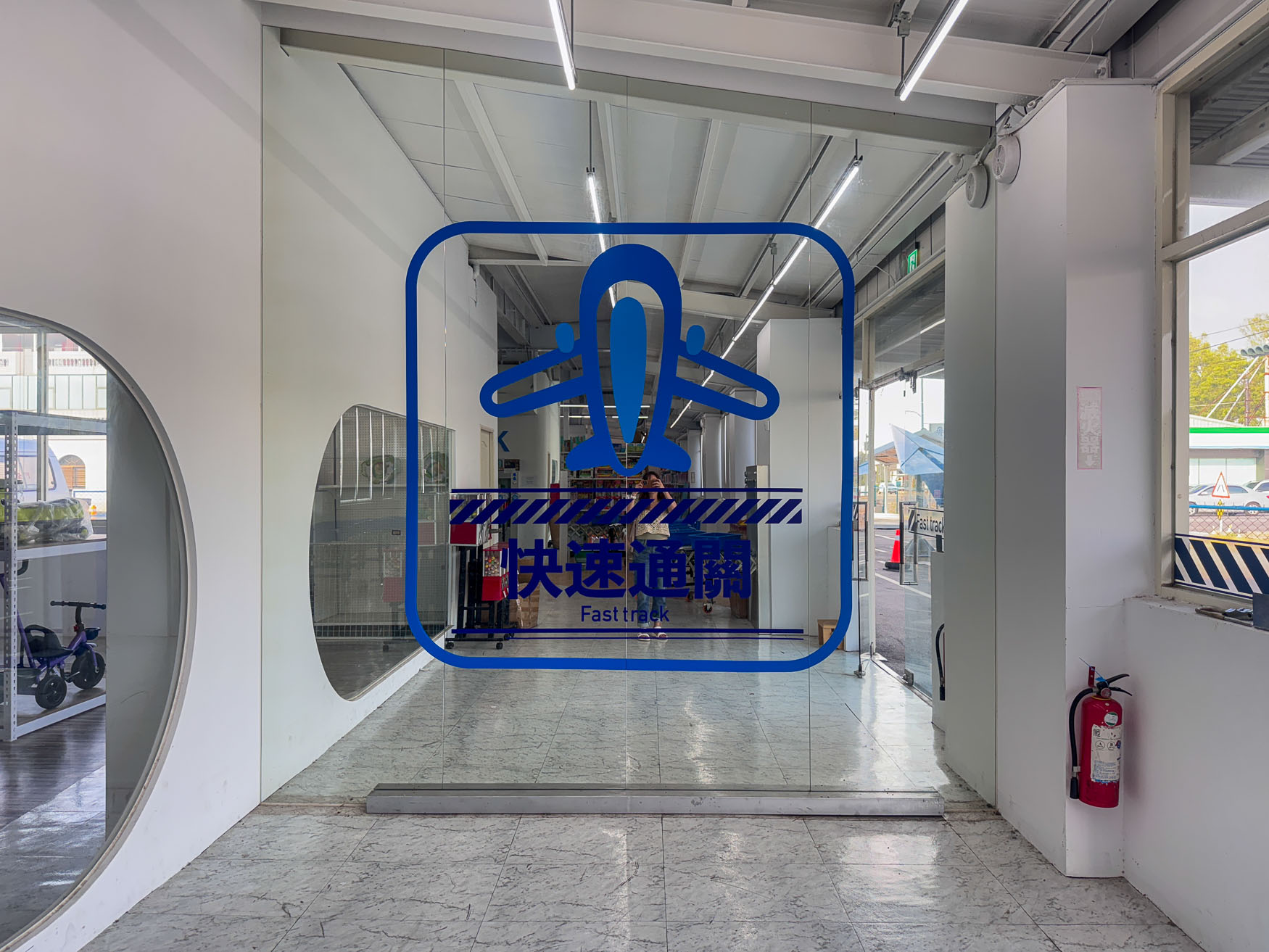 從外觀設計成醒目的機場意象,白色建築配上機場風的字樣與指引,還有模擬的登機動線。真的有一秒就到機場的錯覺。