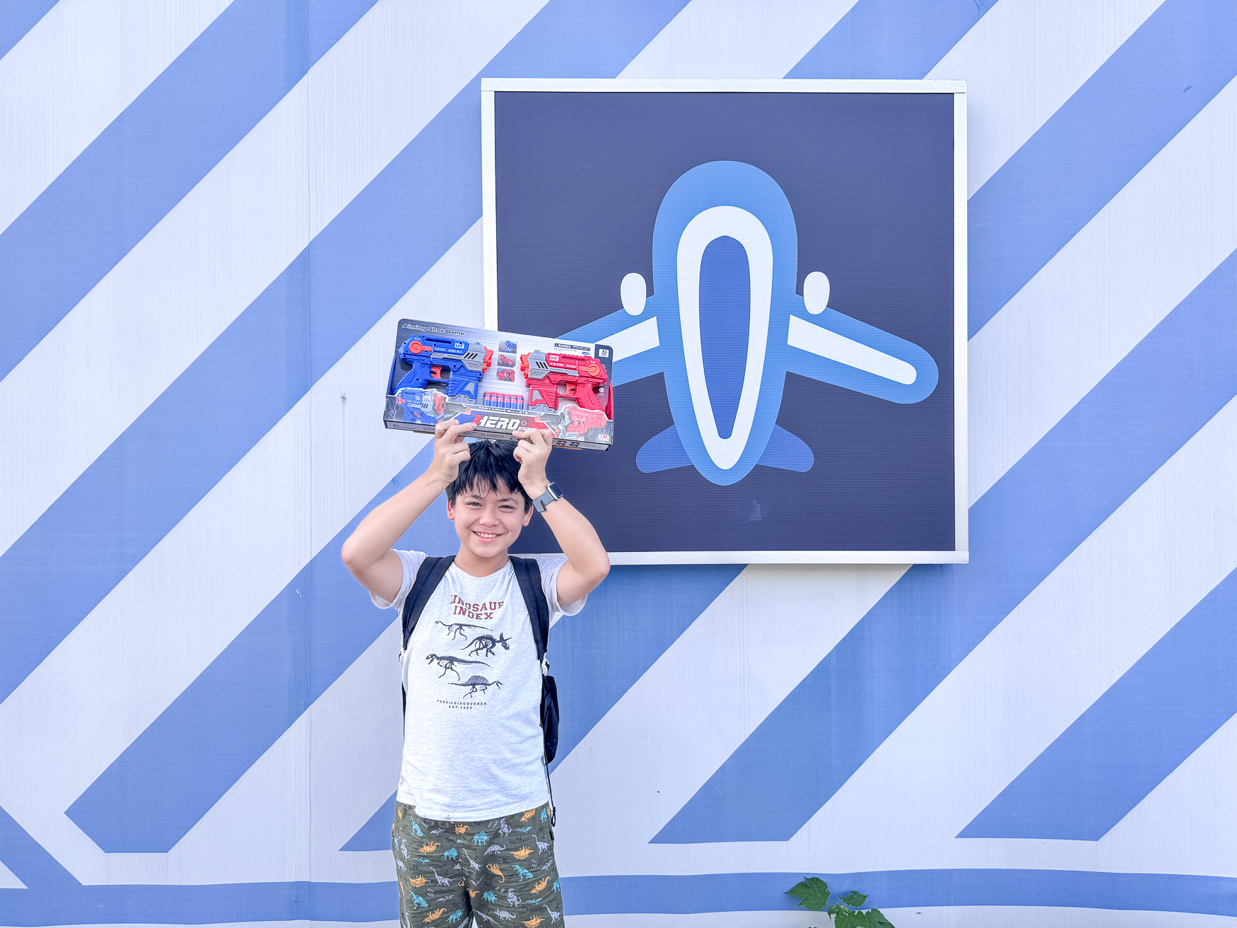 仿真的飛機跑道上還特別擺了一台巨大的紙飛機,象徵飛機準備起飛的瞬間,小孩看到直接興奮到衝上前要「登機」!那畫面真的太可愛,也成了大家必拍的打卡熱點。