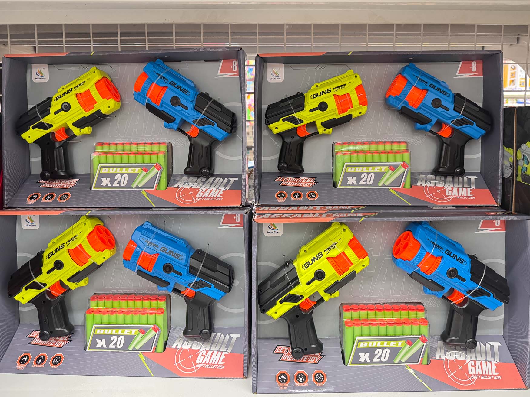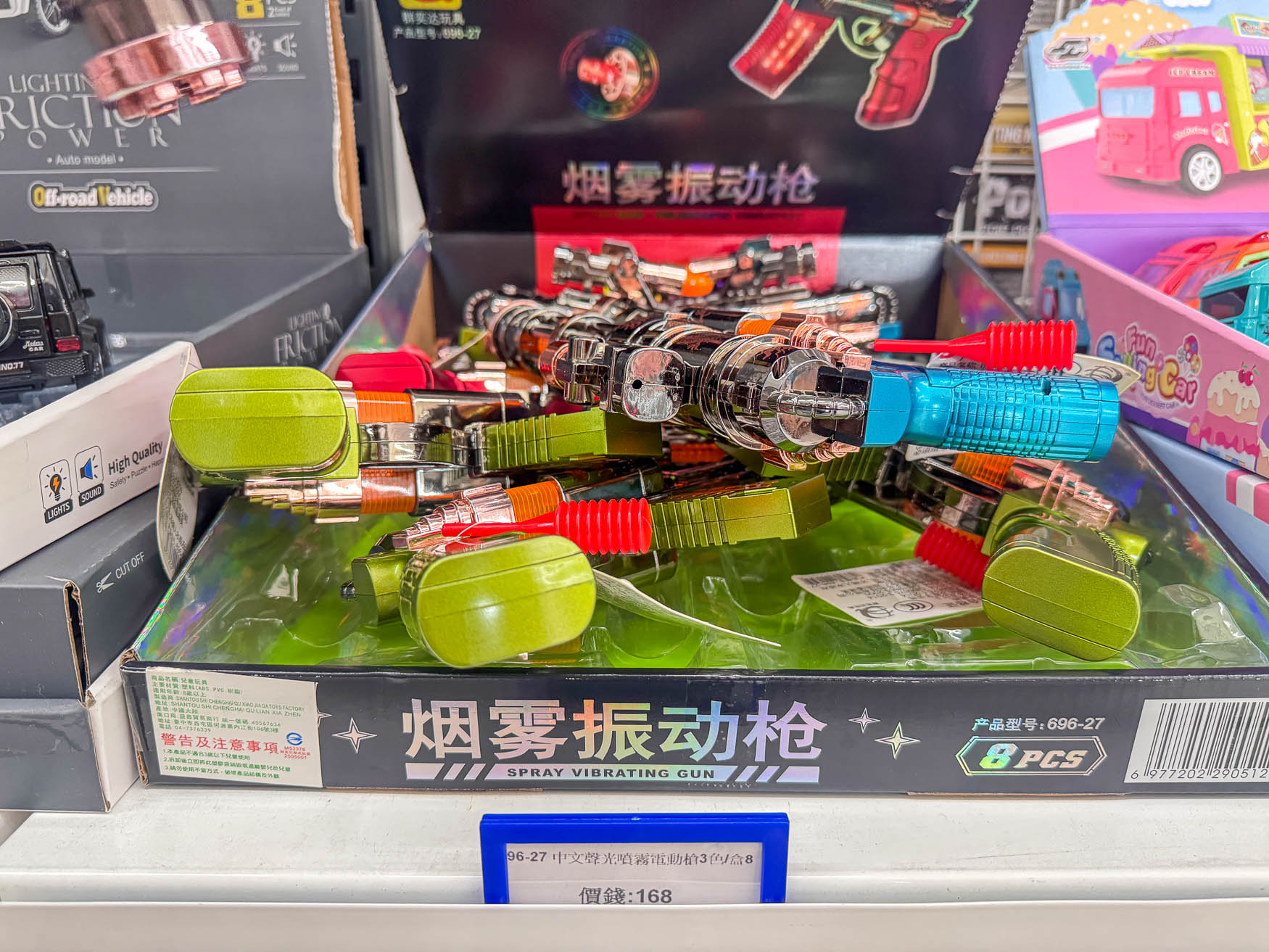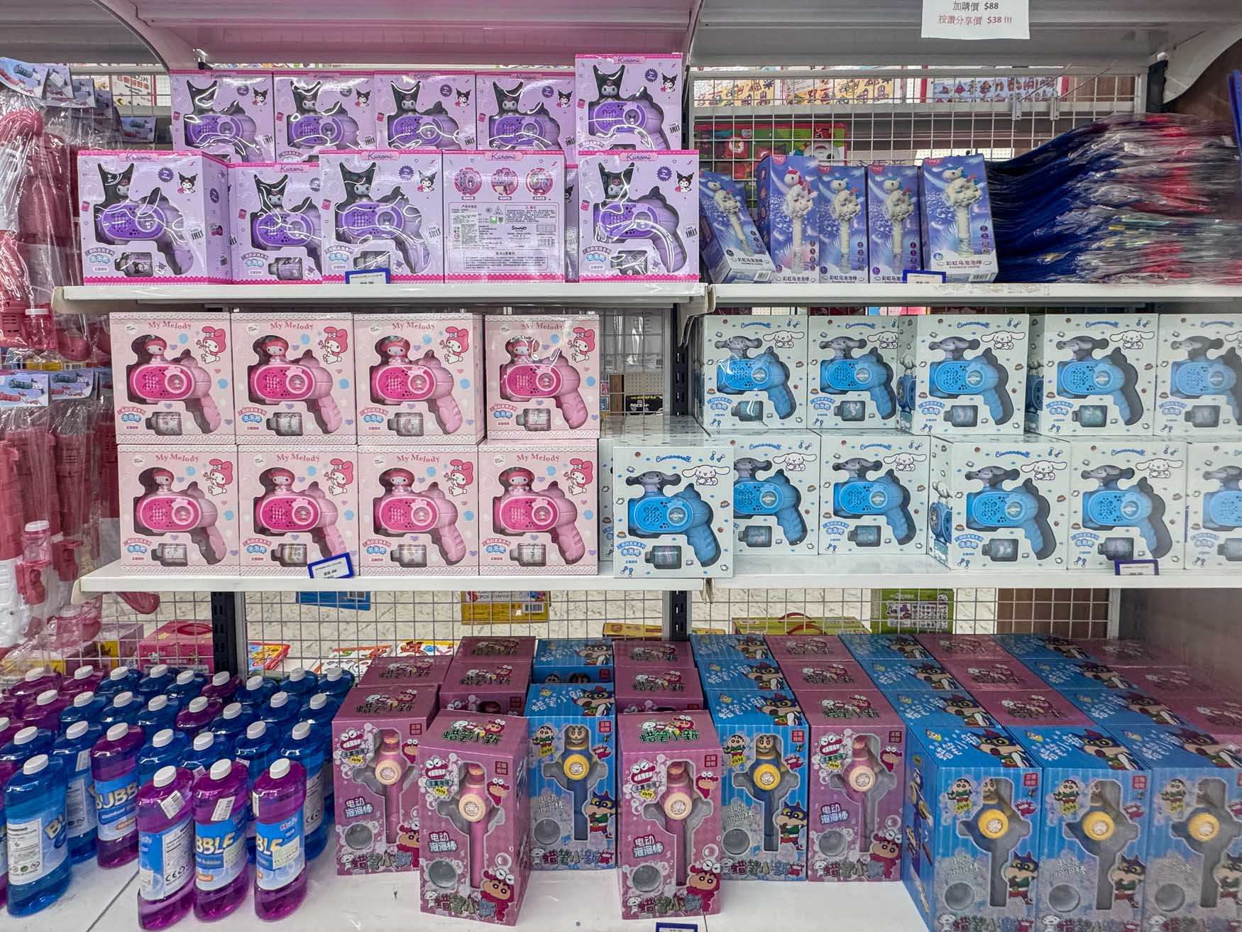 玩具槍射擊類的也有專屬一區,有泡泡槍、電動槍等,通通都是小資價格就能帶回家。