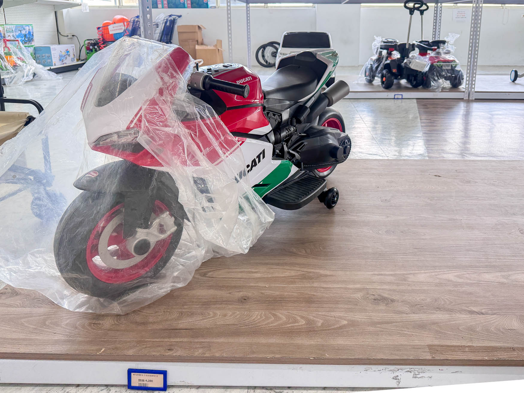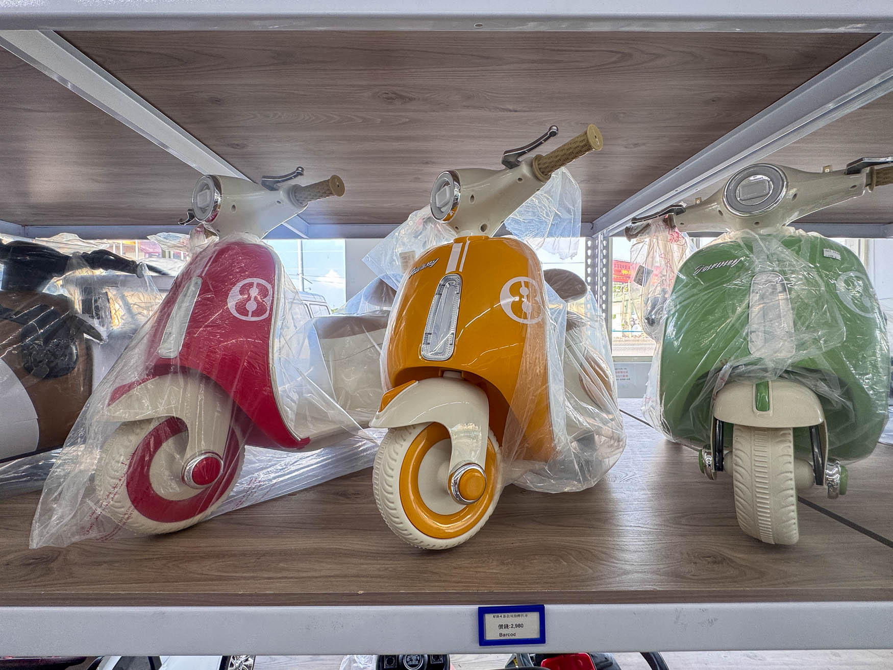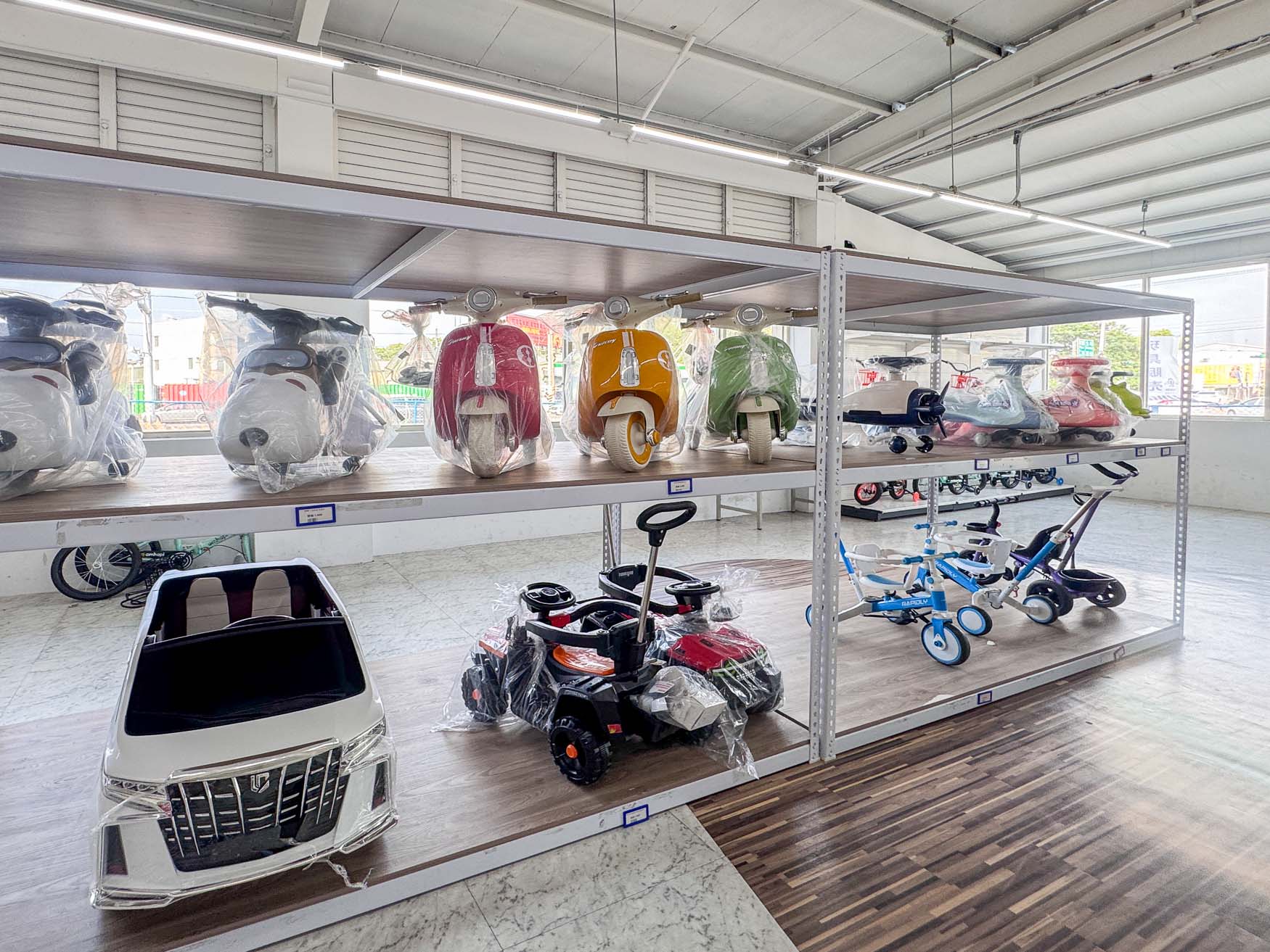 這裡的車款多到眼花撩亂,從超跑造型的電動汽車、越野摩托車,腳踏車與滑步車等都挑選的到。