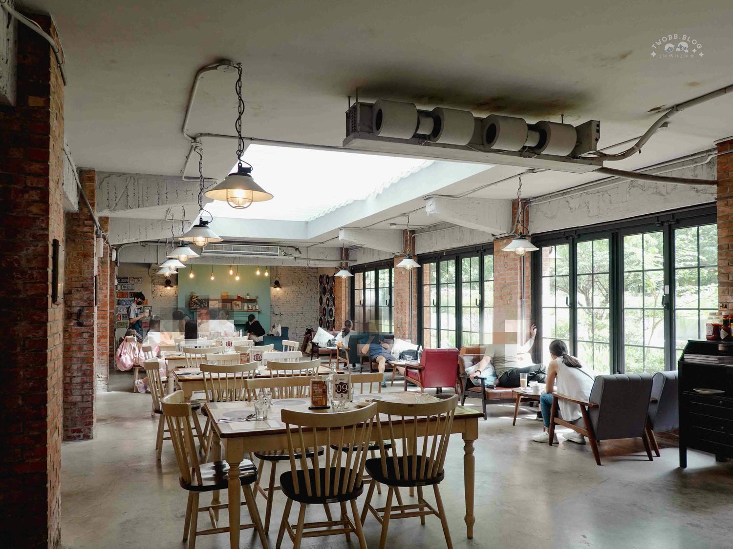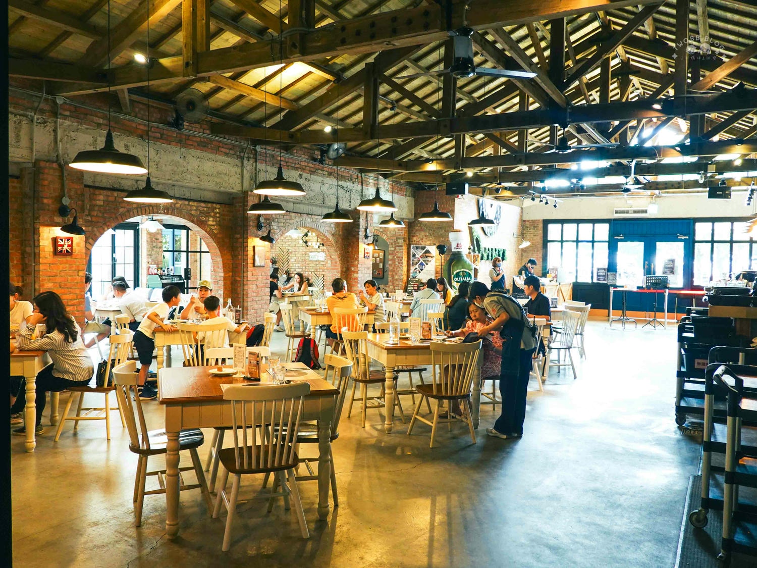 美軍俱樂部是美軍宿舍群改造面積最大的建築物,估計約為900多坪。光是室內用餐面積就分成好多區。採用復古紅磚營造舊建築風格,當年美軍俱樂部可是結合台灣在地建築工法與美國南方鄉村特色。
