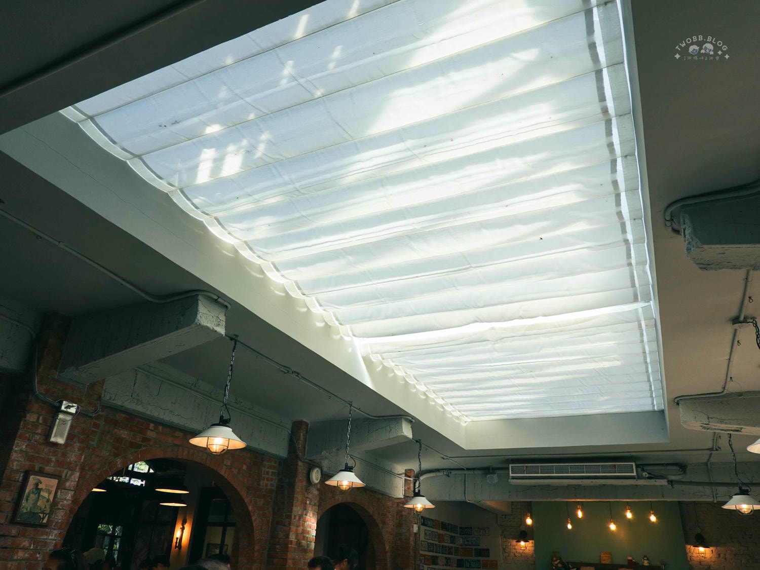 當時就留下來的這處天花板樣貌,天況良好時展開迎接自然陽光一定相當舒服。