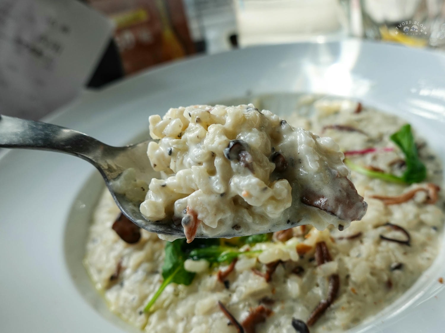超有飽足感的燉飯,每次妮叡媽都得跟同行友人分著吃才吃得完,粒粒分明的燉飯充滿野菇香氣,濃郁醬汁與米飯交織越嚼越香,可惜妮妮與叡叡都不愛菇味,無法享用這道美味。