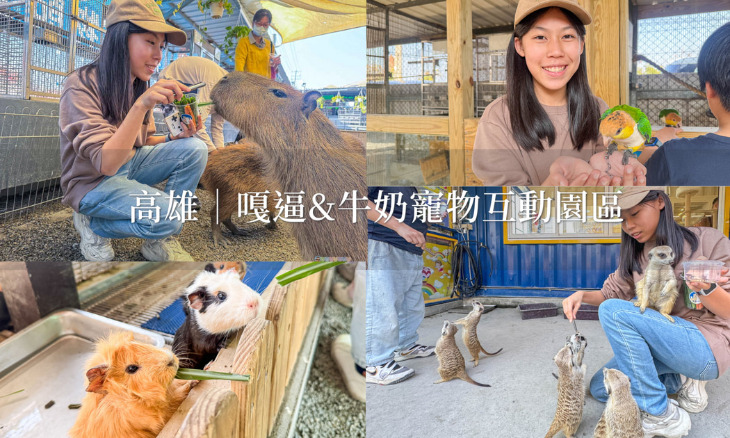 以寵物為主題的高雄親子景點「嘎逼&牛奶寵物互動園區」環境乾淨無臭味,提供親子遊樂設施,也有可愛動物互動,小朋友來到園區真的超興奮,平日可帶寵物毛孩入場。除了農場常見的狐獴、水豚、草泥馬以外,也有罕見的巨型貴賓犬互動區。另外也有貓屋、爬寵等,是高雄最零距離接觸的寵物互動園區,假日人潮相當踴躍,所以採預約制,可以規劃早一點來遊玩。