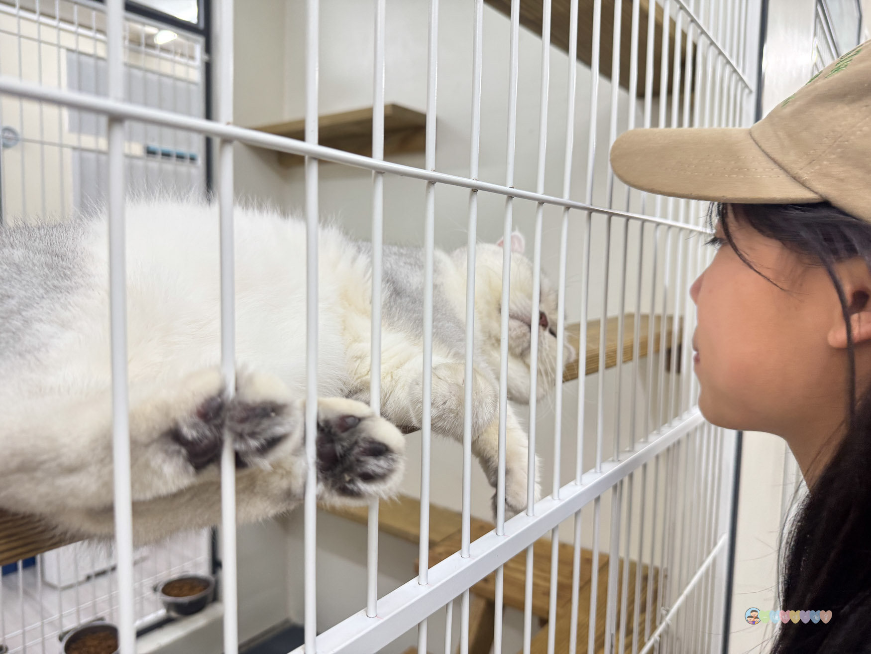 這裡有一處專屬貓咪的小空間「貓屋」,貓奴們可以盡情在這裡享受嚕貓時光。有的窩在貓窩裡睡到嘴角上揚,一副「朕今天不想社交」的高冷樣。