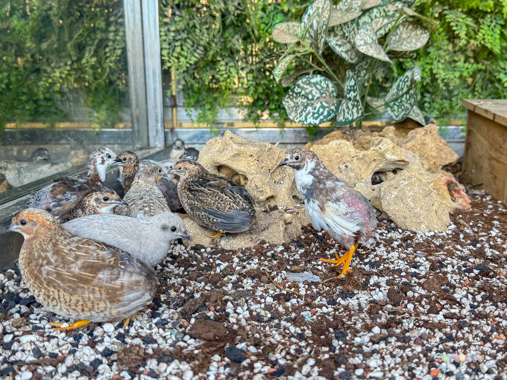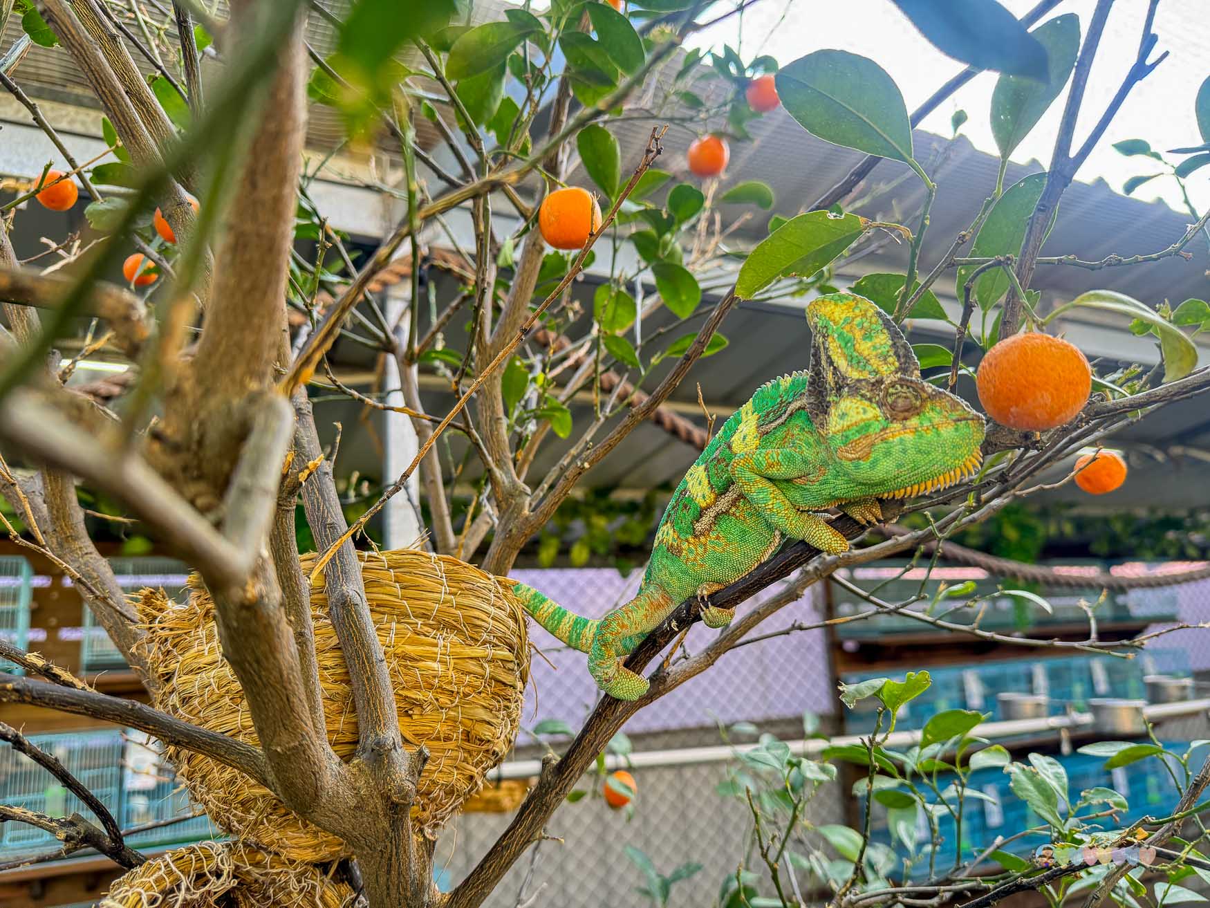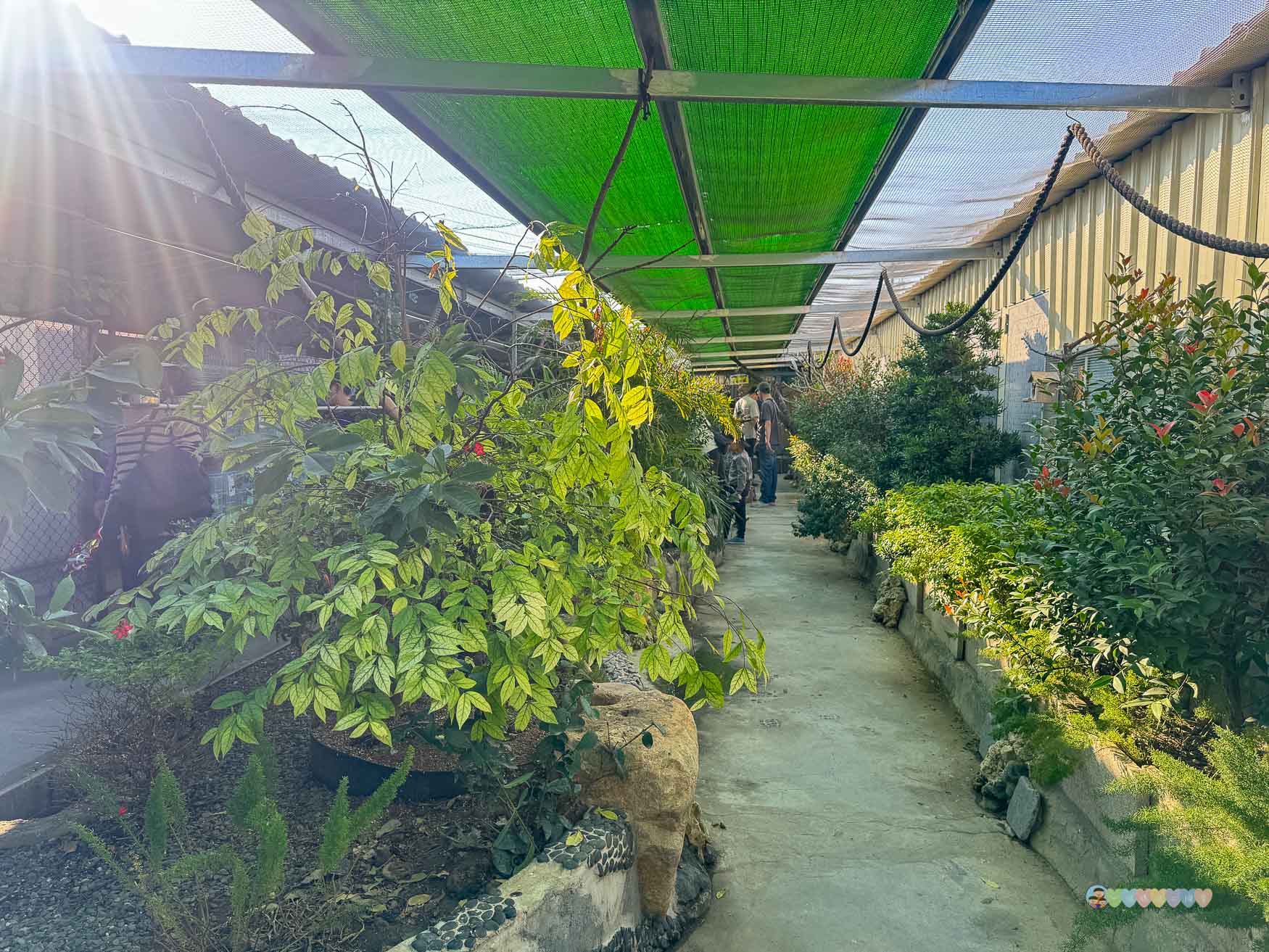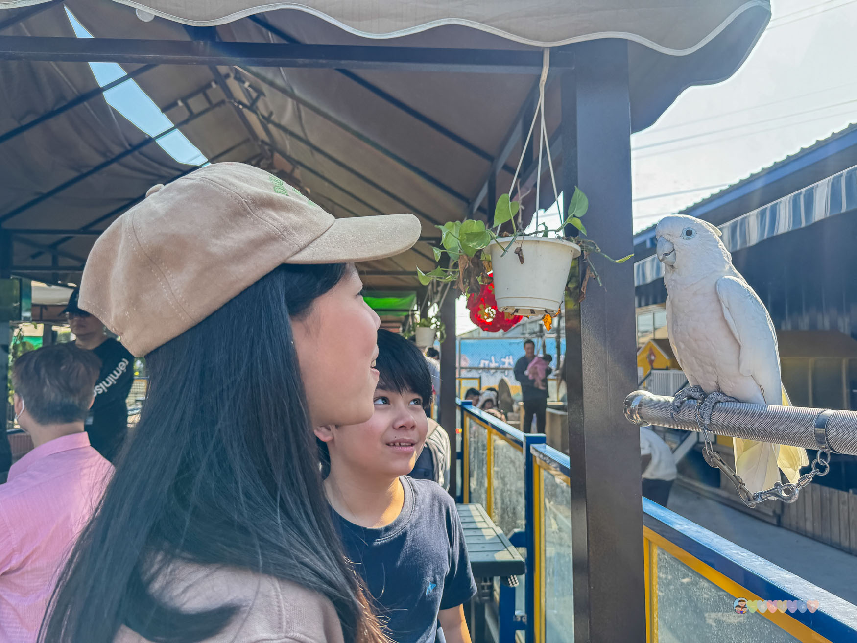 一路繞到鸚鵡區,這群小可愛根本是會飛的狗狗。五顏六色的羽毛在陽光下閃閃發亮,牠們一邊喳喳叫、一邊用那招牌「歪頭殺」觀察著我們,眼神裡全是好奇又有點傲嬌的神情。