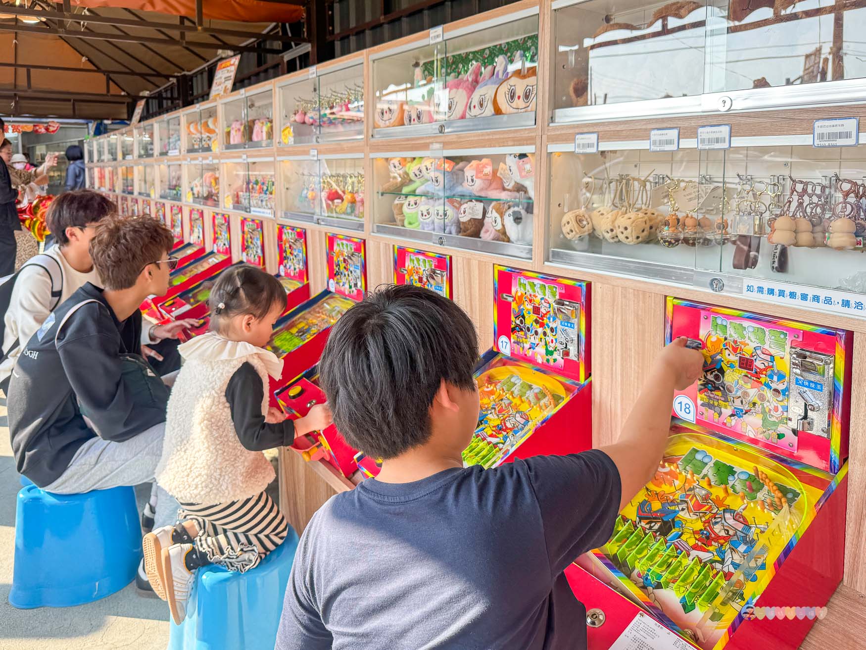 看完可愛的動物後,就是孩子的玩樂時間了,一整排的彈珠檯我以為自己來到夜市,有分數就會有票券,可依照票券上的點數去兌換等價禮物。