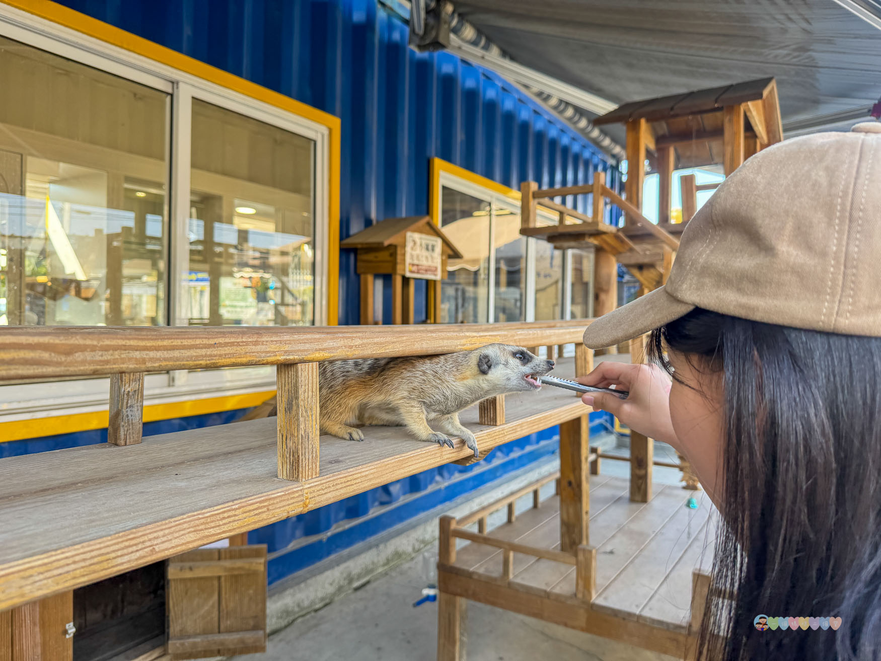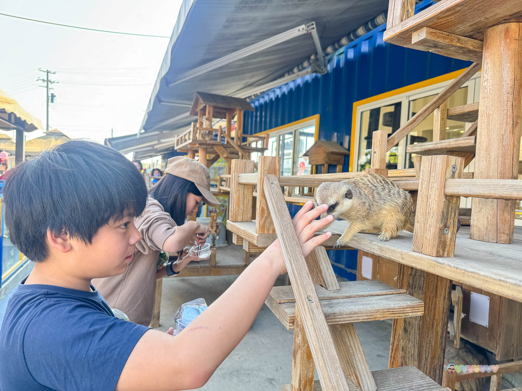 「嘎逼&牛奶寵物互動園區」的狐獴區是可以直接進入親密互動,但記得狐獴可是很調皮,所以要進入前得先通知工作人員開門喔。