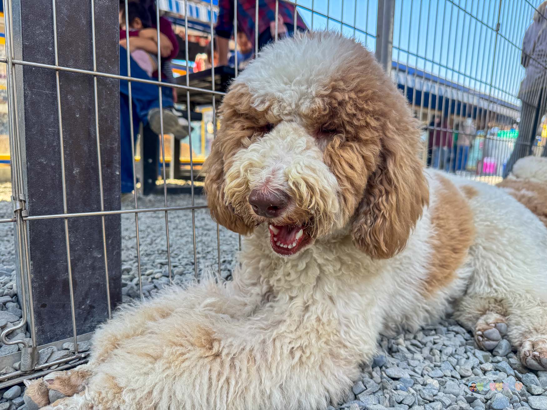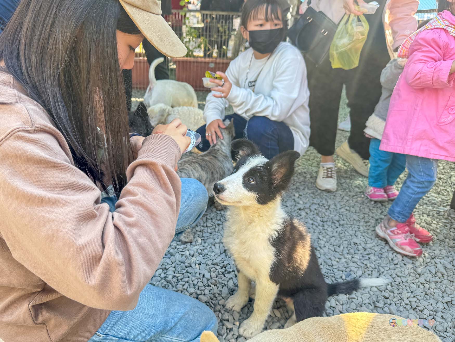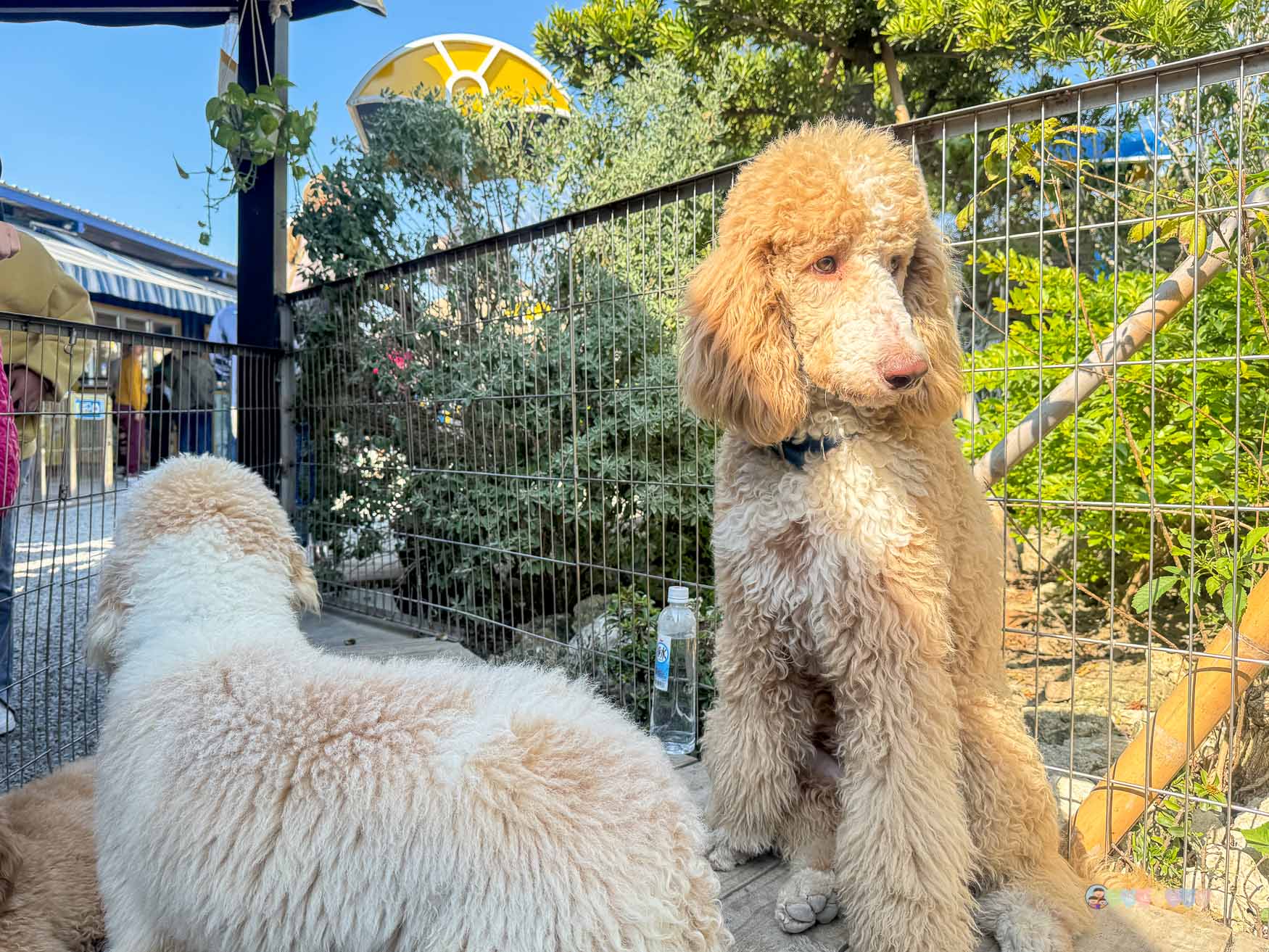 去過不少動物農場,能夠看到狗狗專區也只有「嘎逼&牛奶寵物互動園區」,超可愛的巨型貴賓馬上就吸引我們。