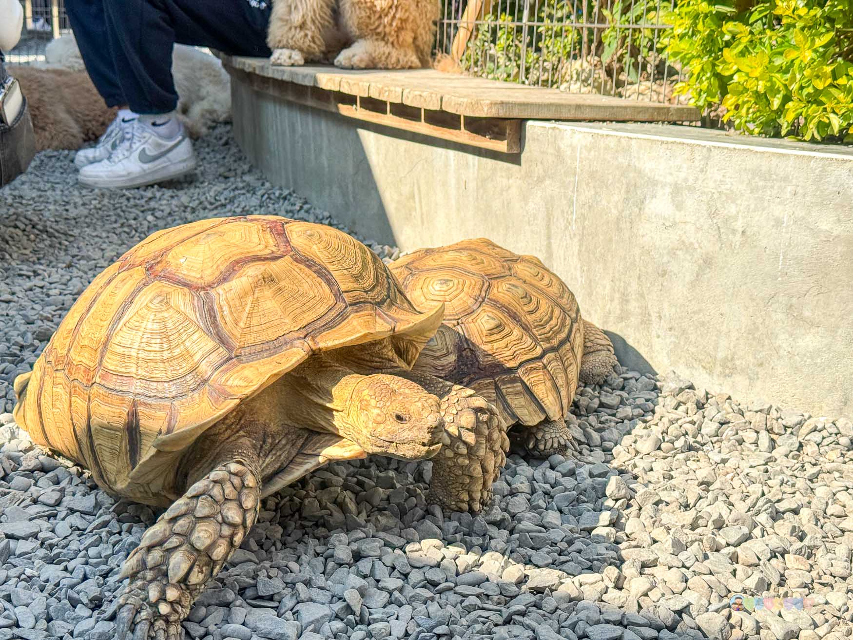 在狗狗區裏頭還能看到幾隻「蘇卡達象龜」慢悠悠的散步曬太陽,一點也不怕人。