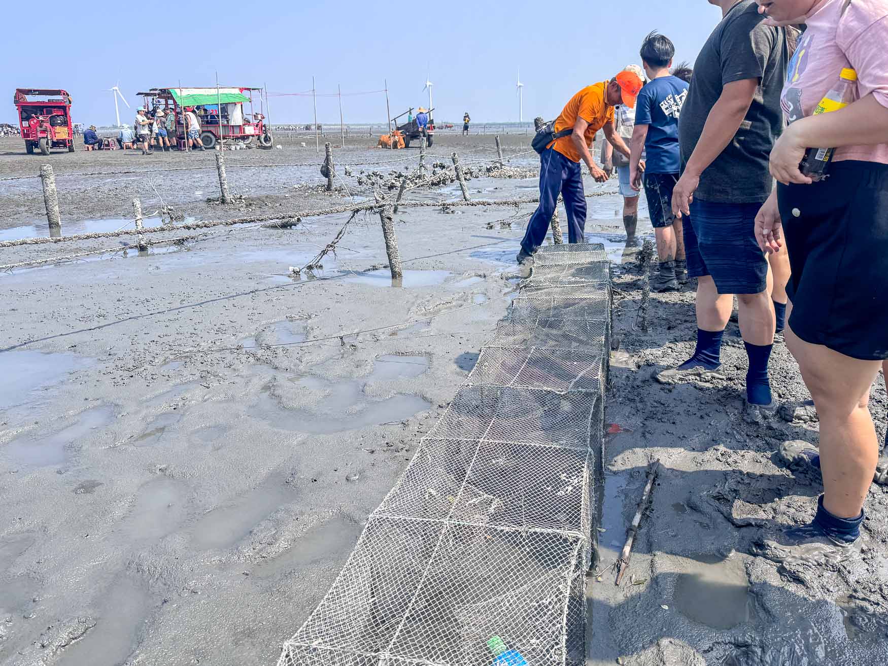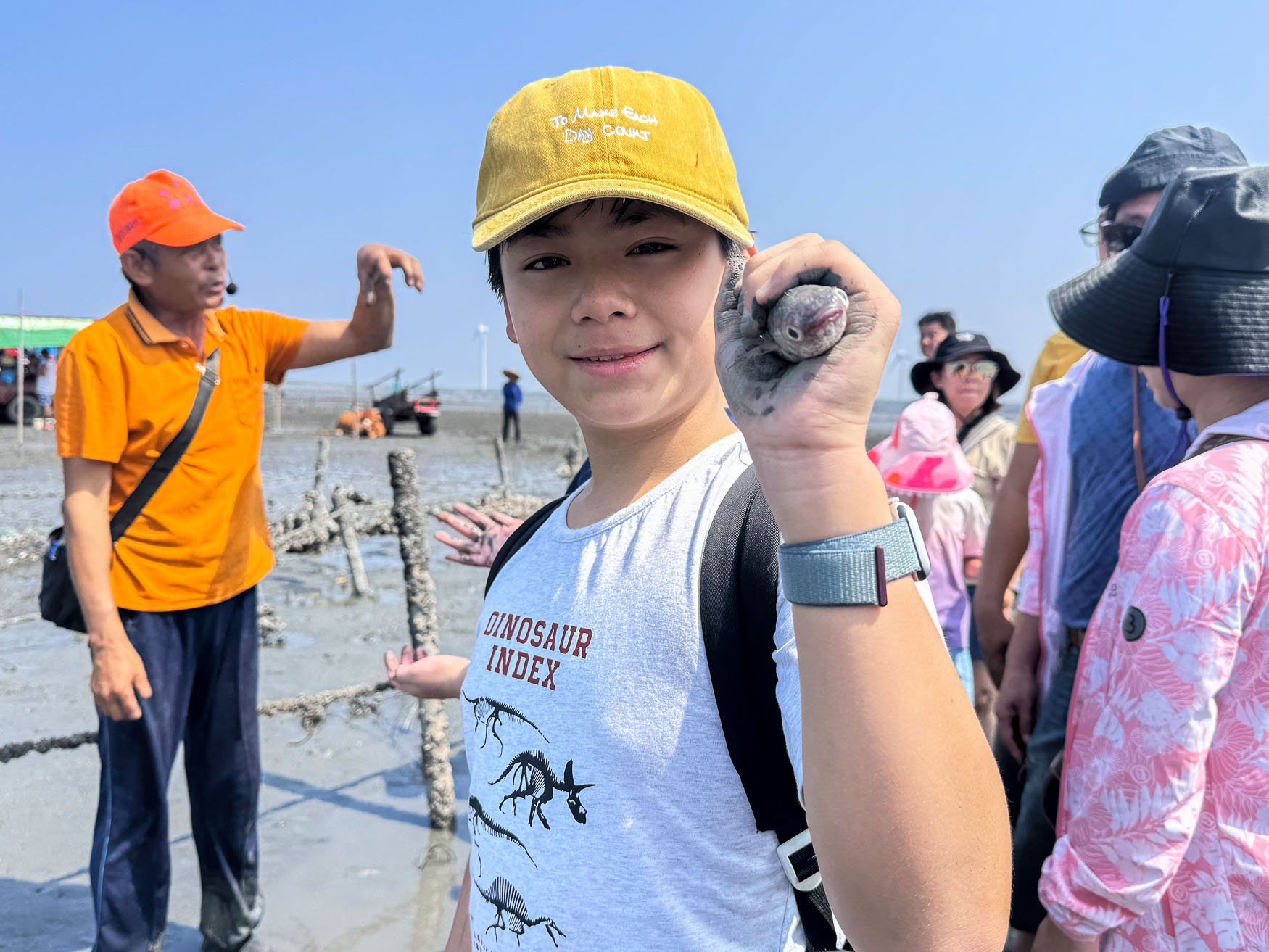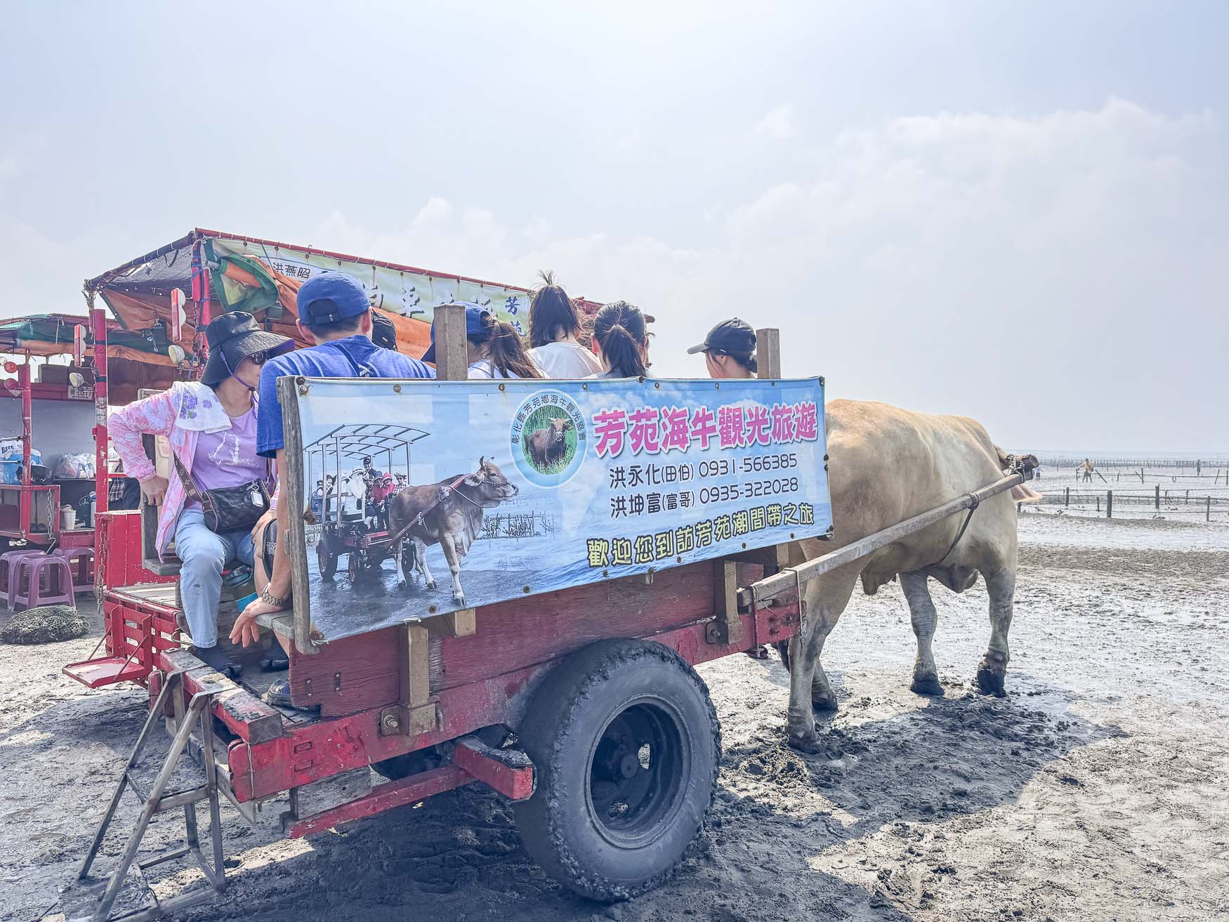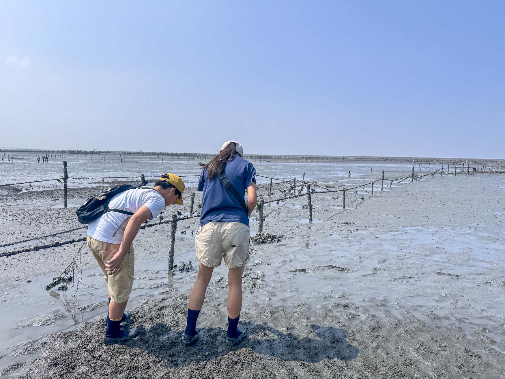芳苑濕地以生態豐富、海牛車文化獨特聞名,這裡不僅有滿滿的漁村風情,還能帶小朋友一起坐上海牛車、體驗挖蛤仔、享受現烤蚵的鮮美滋味,Google搜尋就有不少專門帶入濕地的體驗活動,我們這次請「芳苑海牛車伯」為我們服務,活動時間大概是2.5-3個小時,也有導覽帶著我們認識溼地的生態。這一趟下來光是伸手挖蛤仔,一趟彰化半日遊就讓孩子們玩得盡興,建議要多帶一套衣服替換、還有先查好潮汐預報喔。↗上網查潮汐預報↗