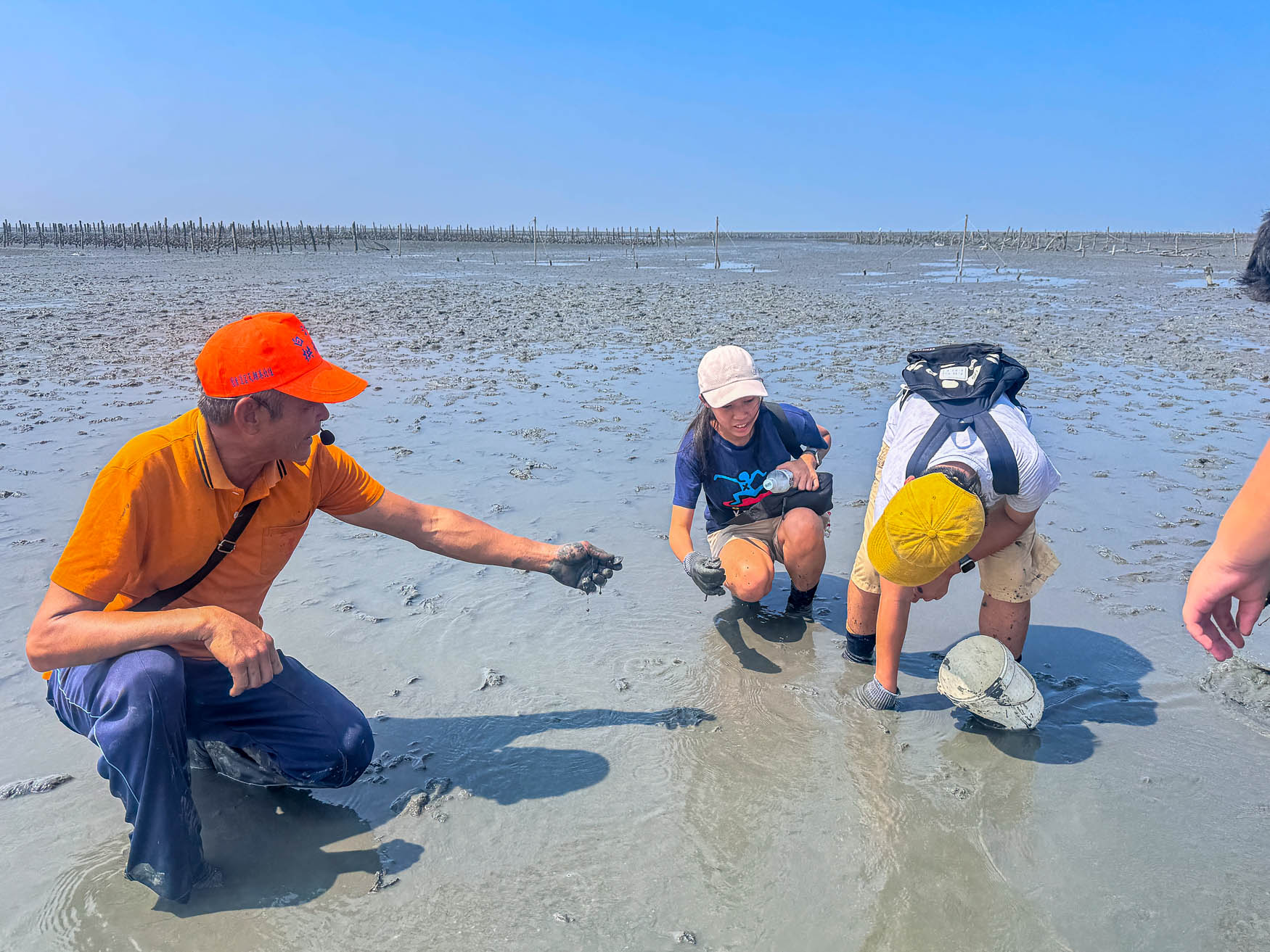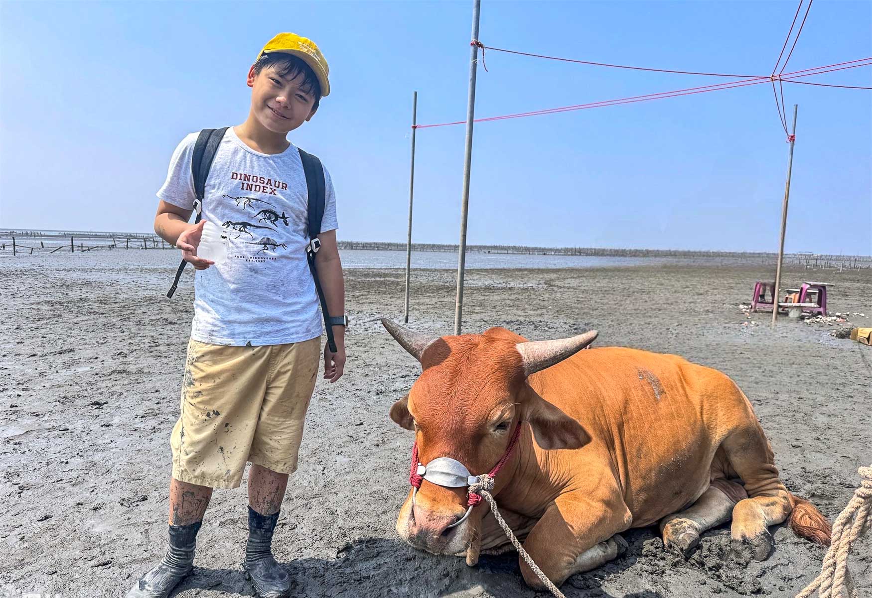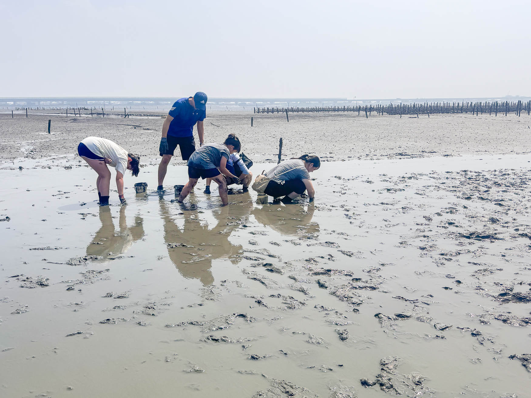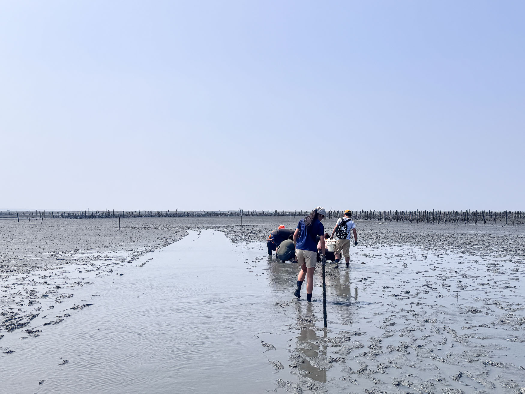 芳苑濕地以生態豐富、海牛車文化獨特聞名,這裡不僅有滿滿的漁村風情,還能帶小朋友一起坐上海牛車、體驗挖蛤仔、享受現烤蚵的鮮美滋味,Google搜尋就有不少專門帶入濕地的體驗活動,我們這次請「芳苑海牛車伯」為我們服務,活動時間大概是2.5-3個小時,也有導覽帶著我們認識溼地的生態。這一趟下來光是伸手挖蛤仔,一趟彰化半日遊就讓孩子們玩得盡興,建議要多帶一套衣服替換、還有先查好潮汐預報喔。↗上網查潮汐預報↗