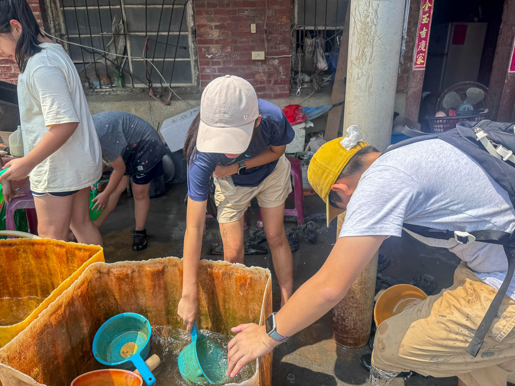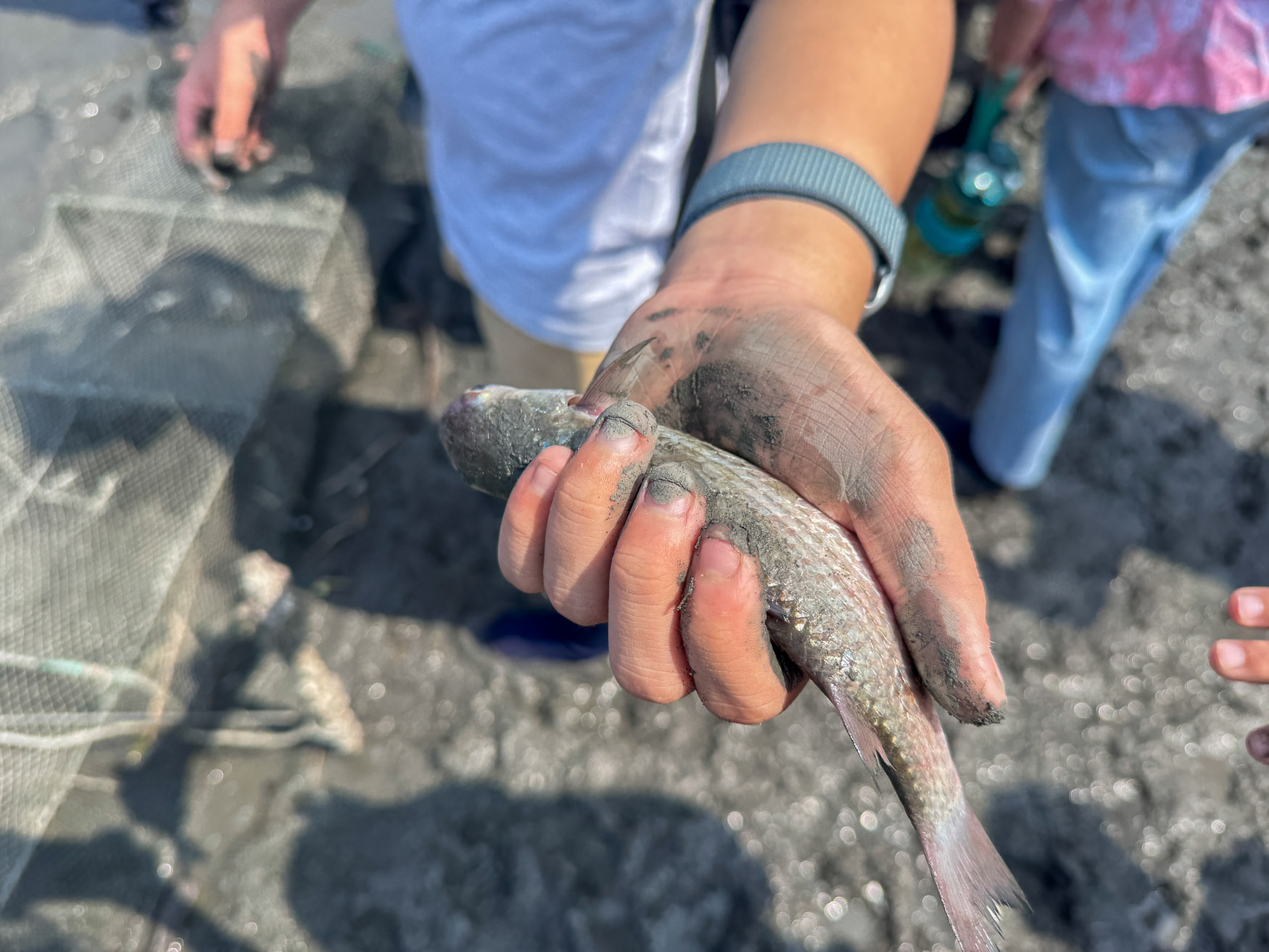 靠著潮汐把魚蝦引進網裡,完全展現出漁村早期的智慧。小朋友聽得目不轉睛,不僅玩得開心,還學到好多漁村知識。