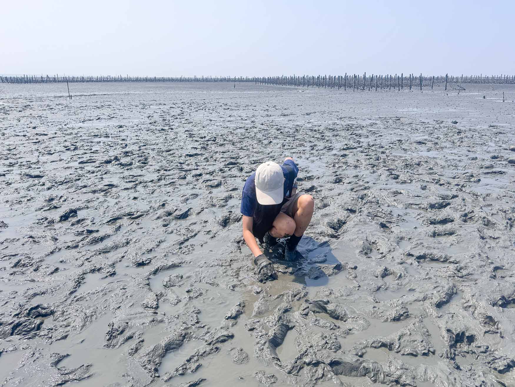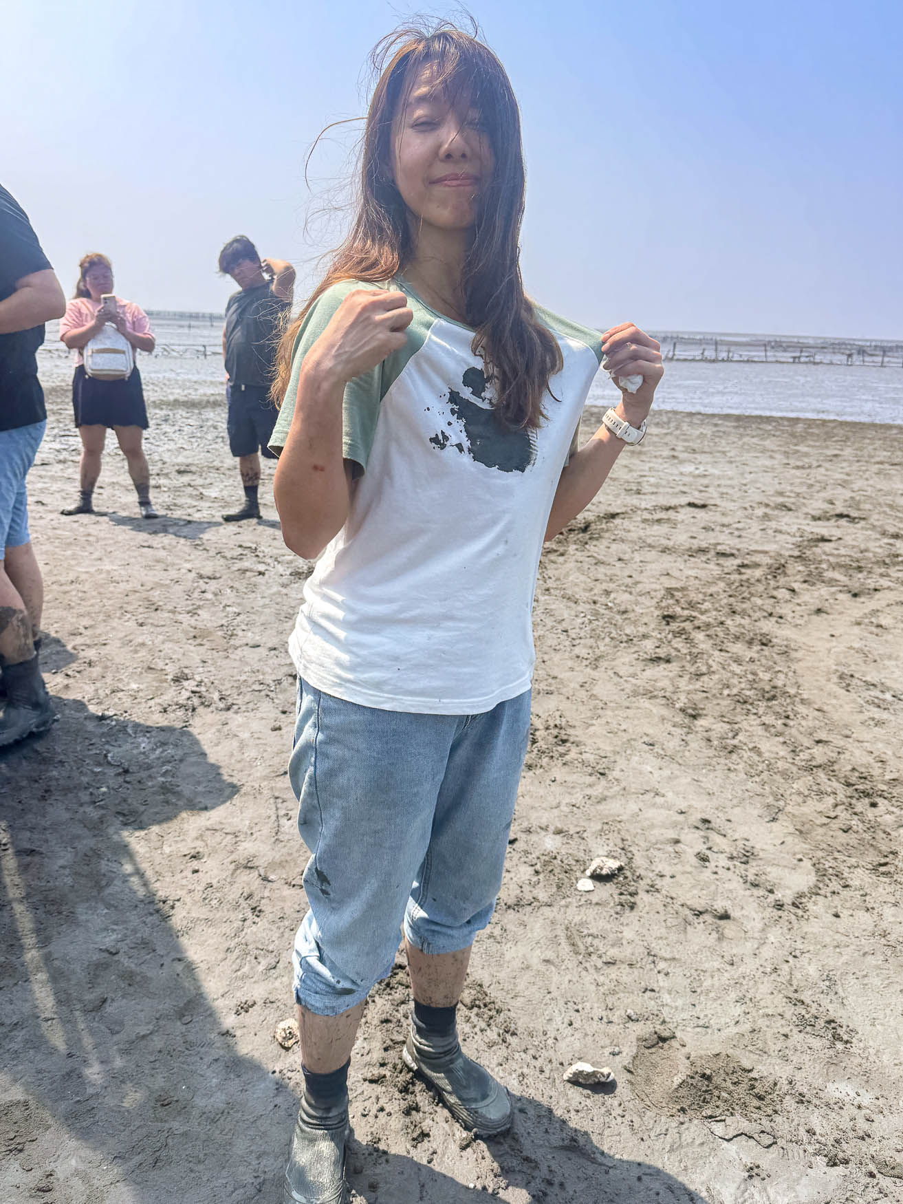 從乾的地一路走到泥濘的溼地裡,真的要有大膽玩不怕髒的心理準備。建議別穿淺色衣服來,會像冠軍媽一樣慘烈。