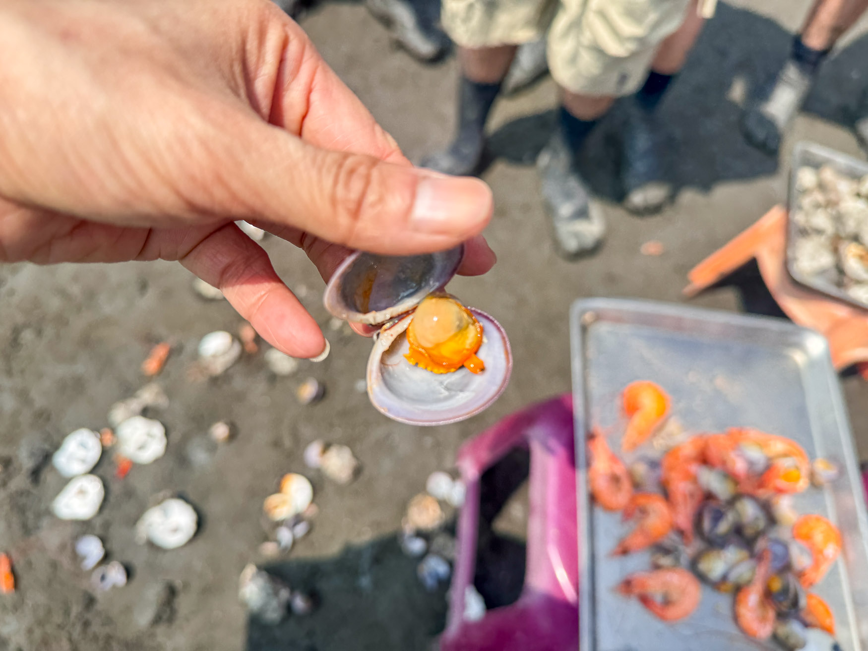努力之後還是小有成績,成就感滿滿的。挖出來的蛤仔可以帶回家,或是留在原地。