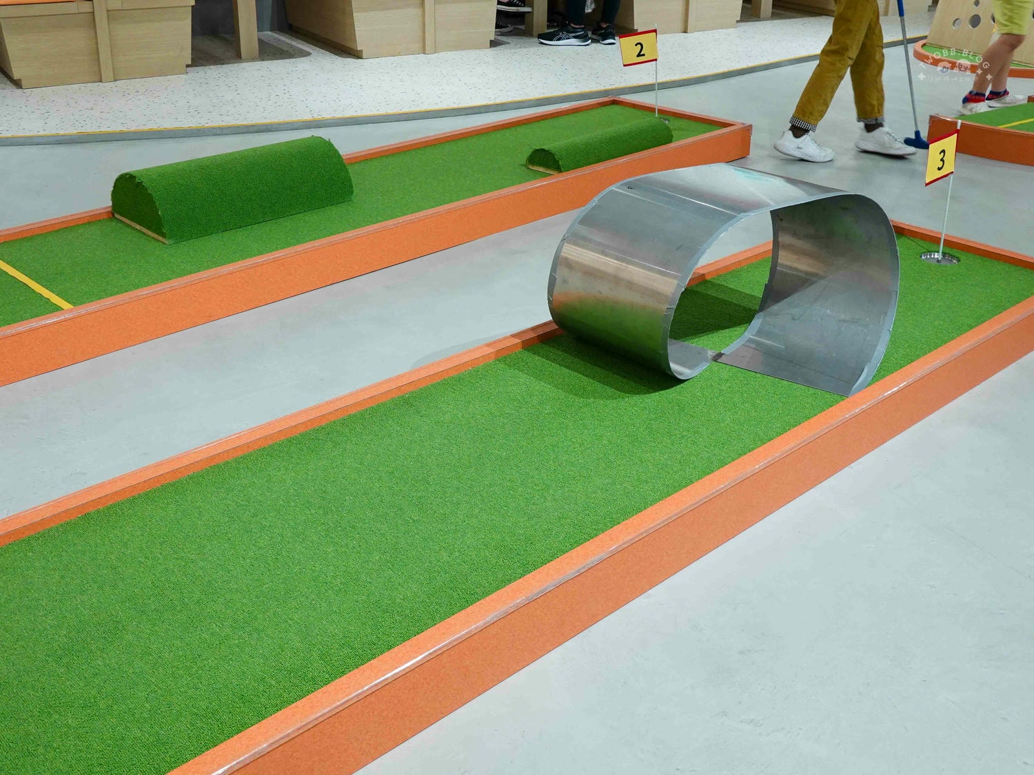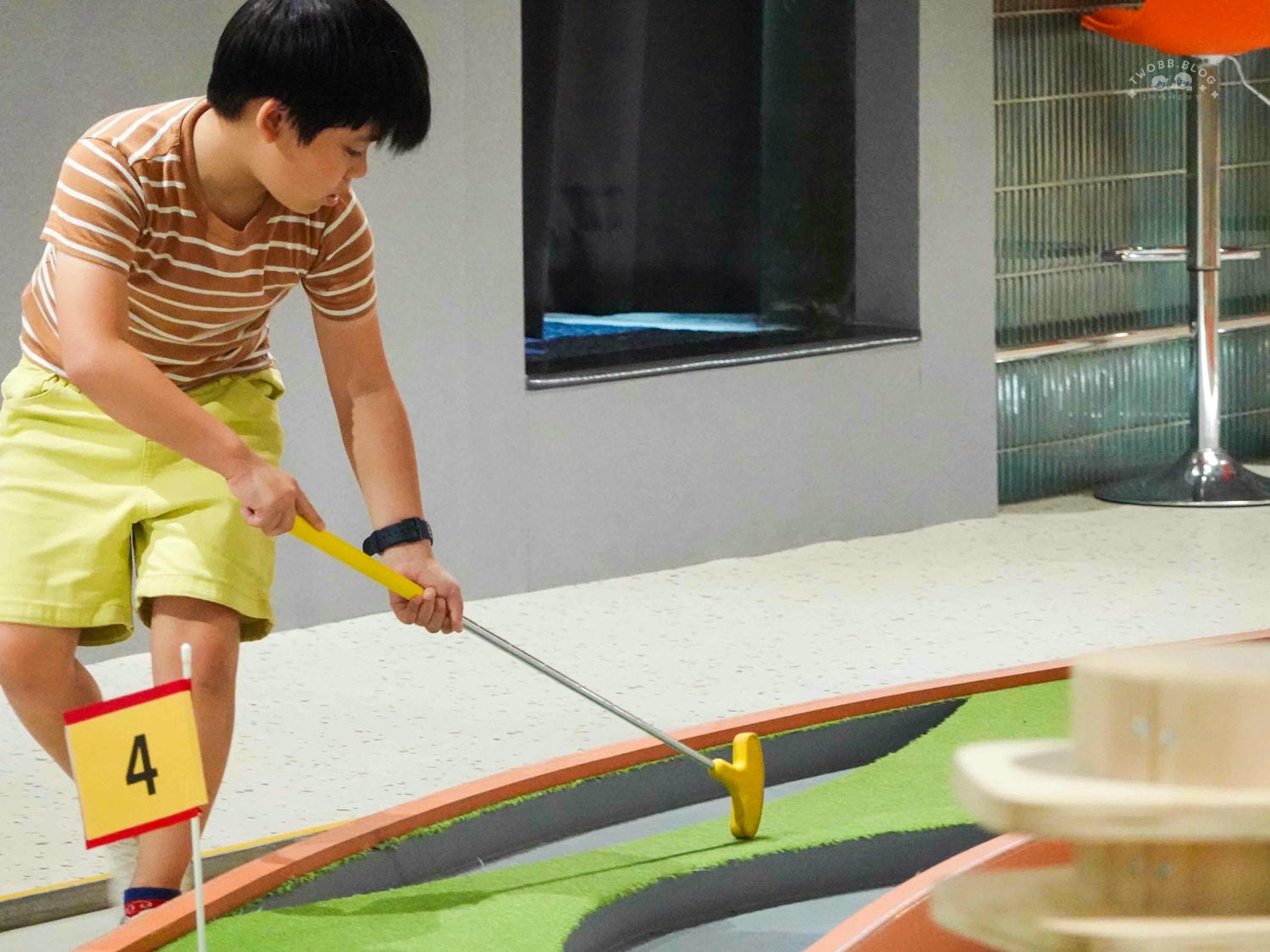 八道不同難度的關卡,果嶺上都有標註編號。不過小孩子通常都不會照個號碼玩,對他們來說好玩至上,能夠享受推桿樂趣才是重點。
