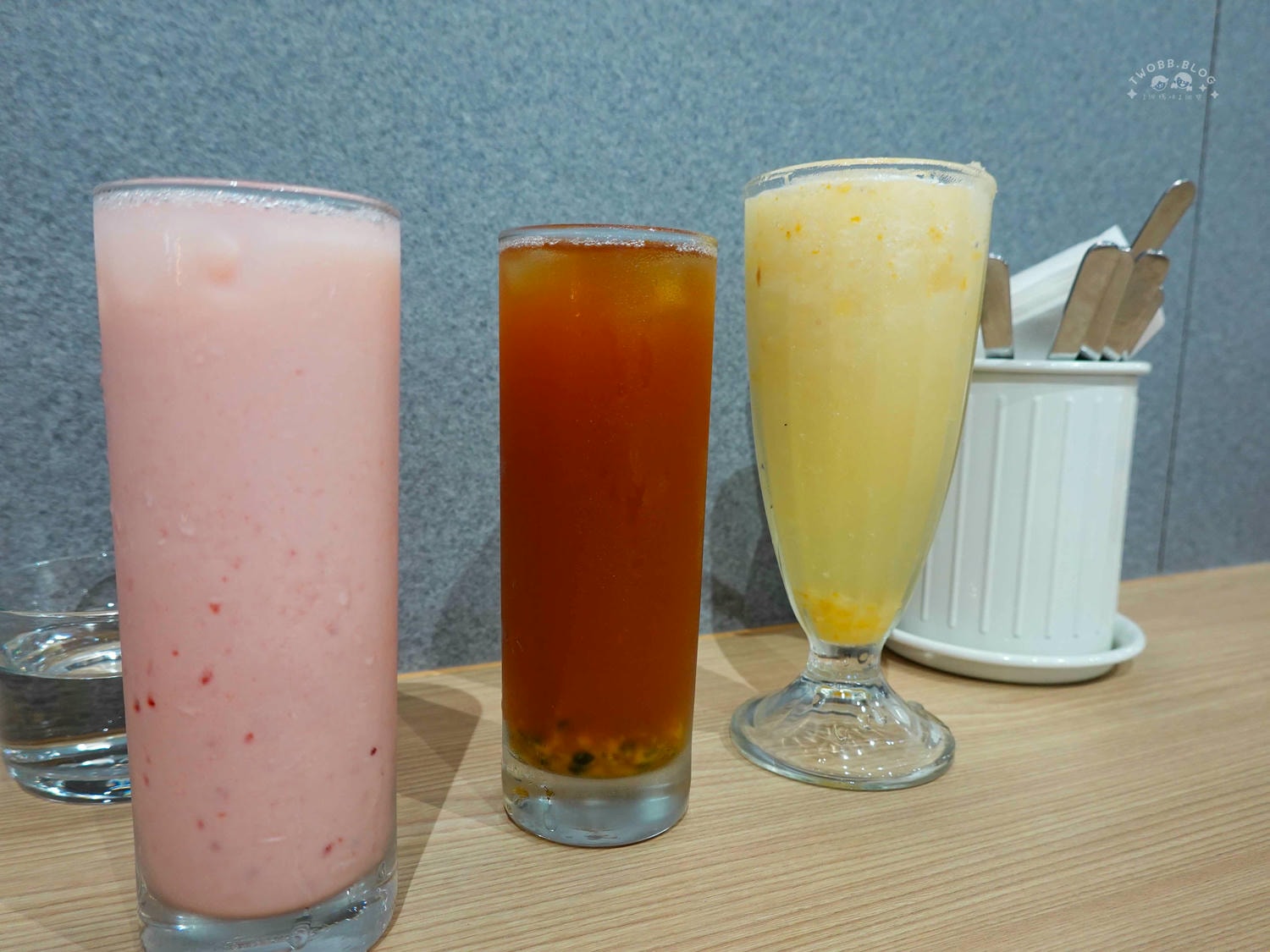 草莓可爾必思$160/韓式柚香冰沙$180/綜合水果茶(冰)$180