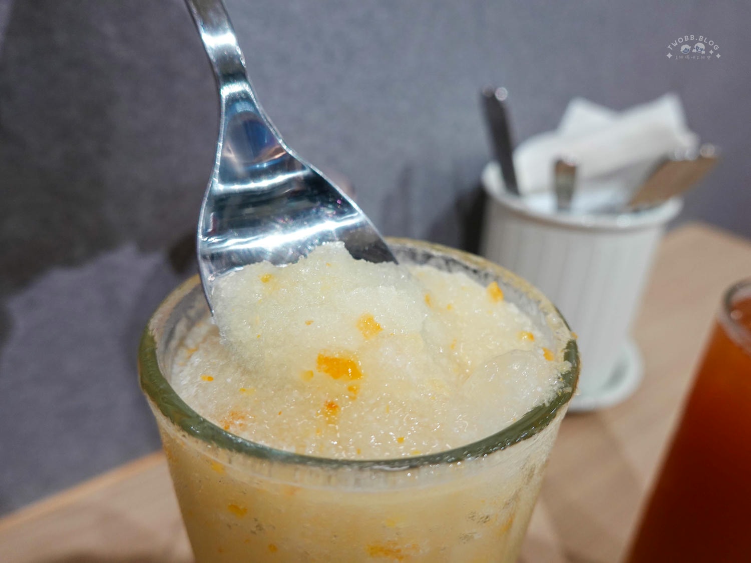 喝起來柚香濃郁且吃的道柚子果肉與果皮的實體,香氣十足搭配披薩吃去油解膩剛剛好。