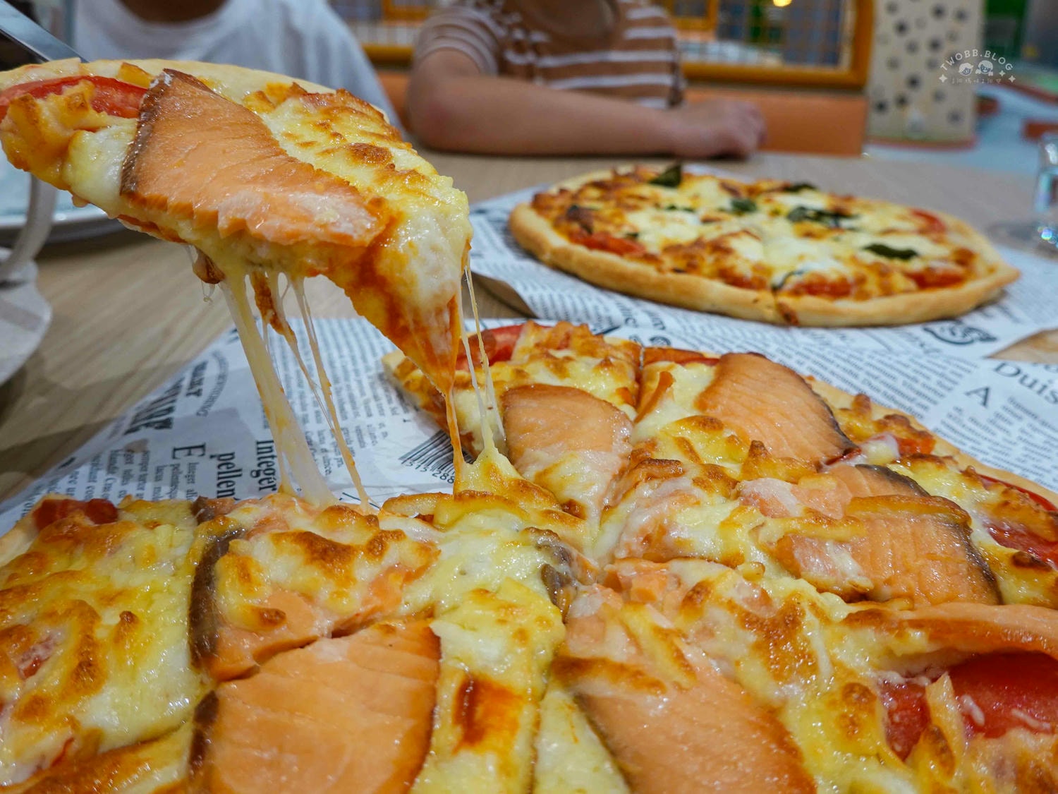 這款不只吃到經典濃郁的起司香氣,多了燻鮭魚的鹹香風味更涮嘴,小孩沉浸在推桿競技樂趣時,媽媽默默吃完了好幾塊..