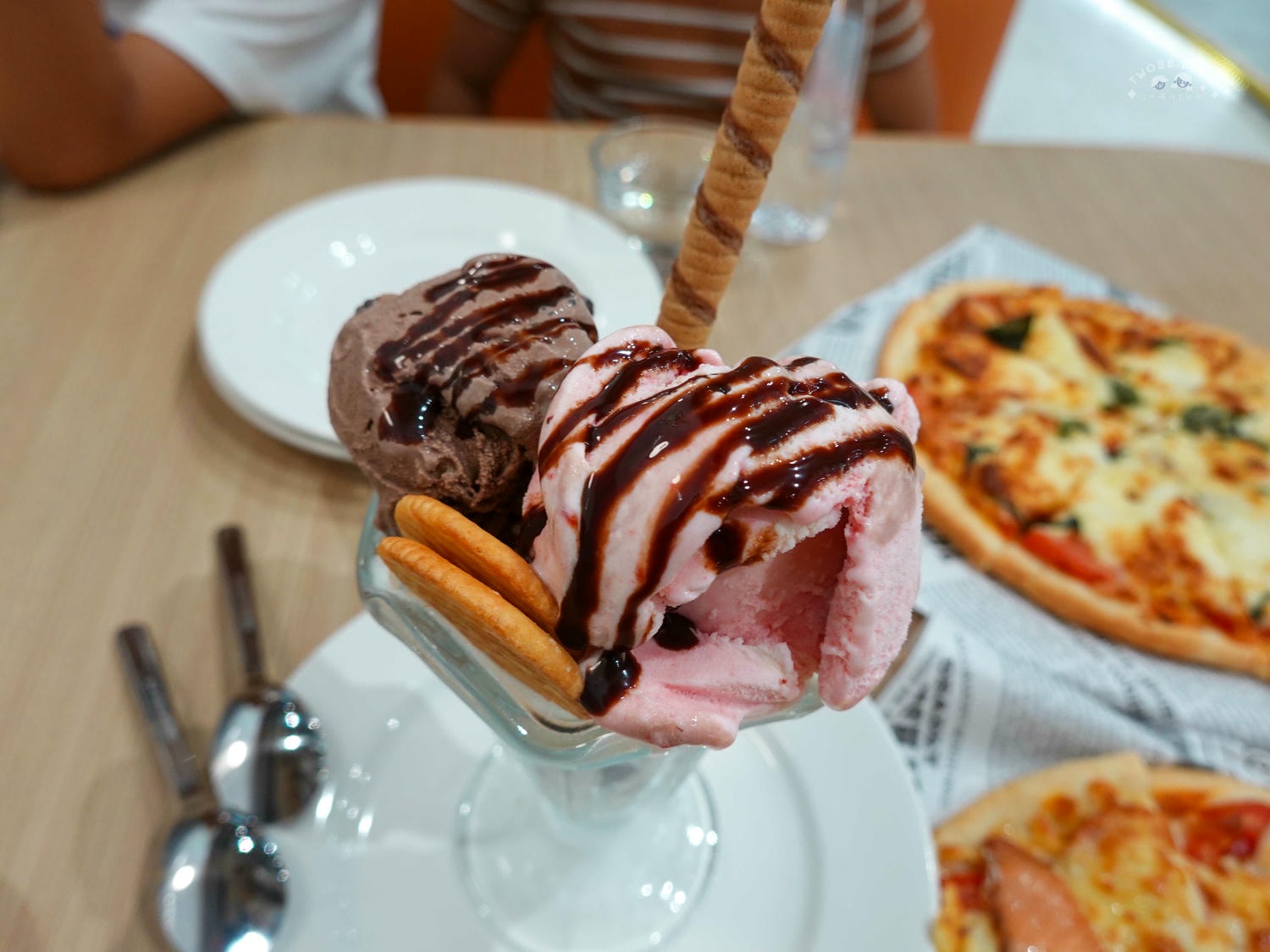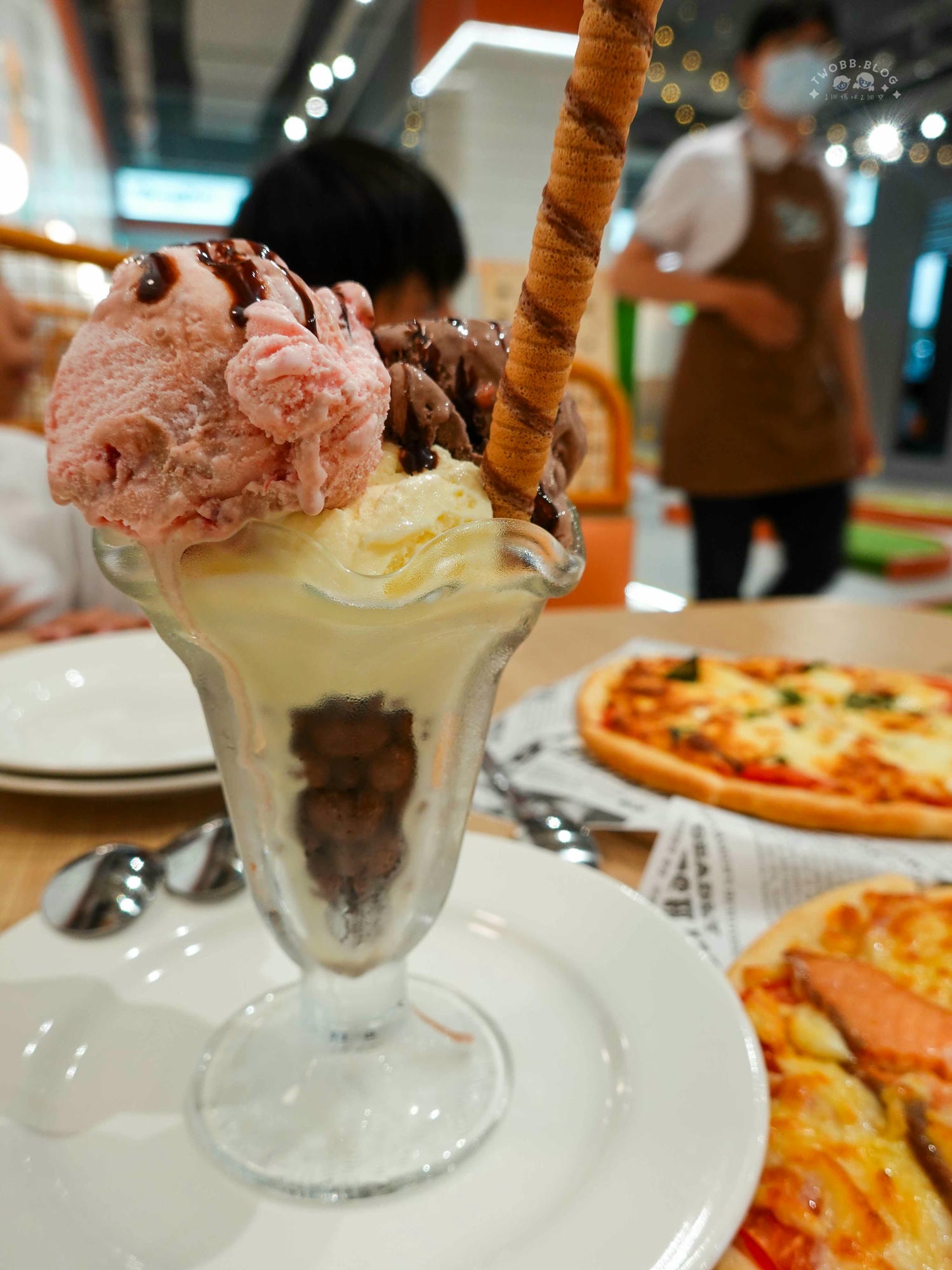 一次就能吃到草莓、香草與巧克力三種口味,冰淇淋底下還有巧克力脆片,加上餅乾與脆笛酥增加層次風味。這杯的份量二個小朋友吃綽綽有餘。