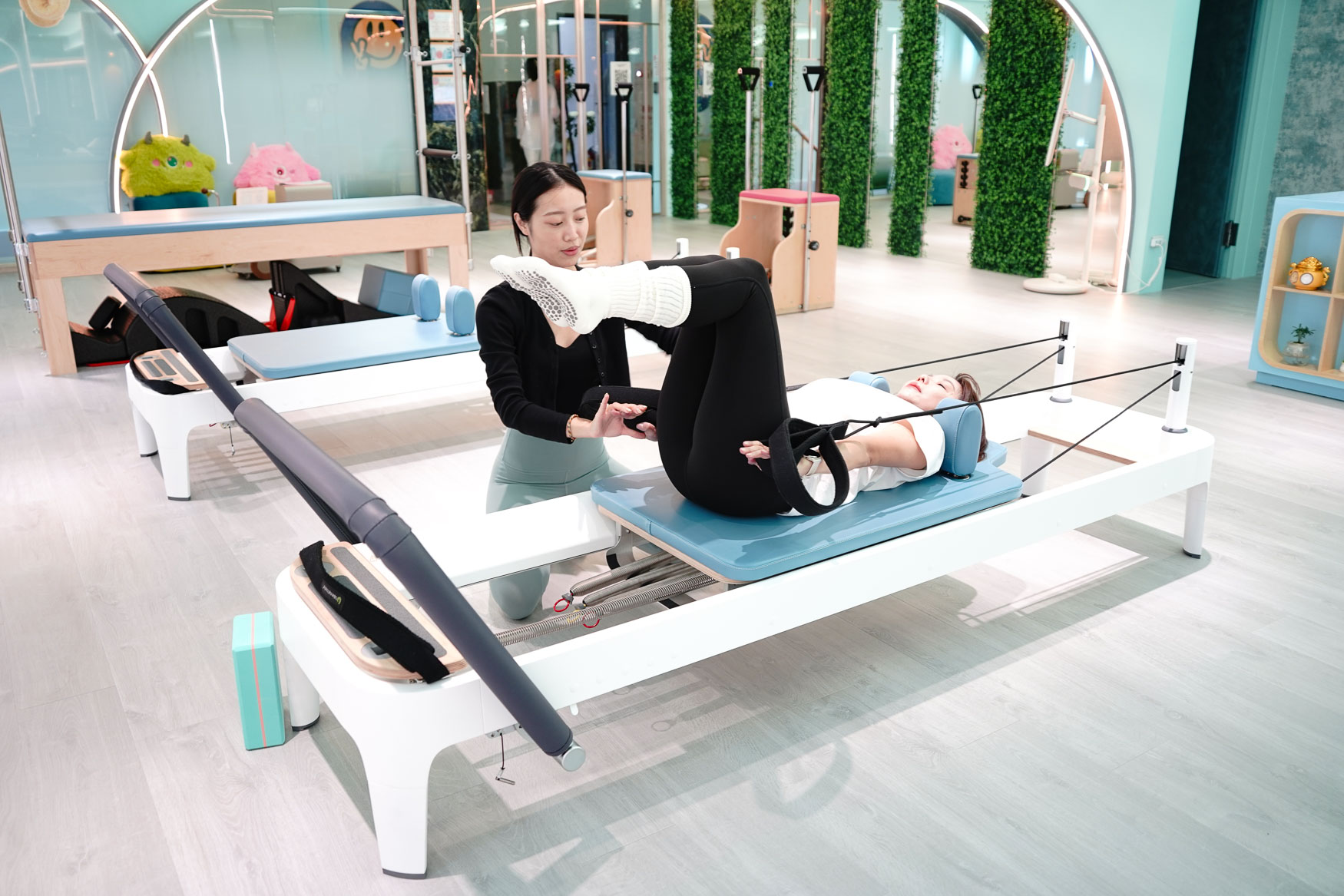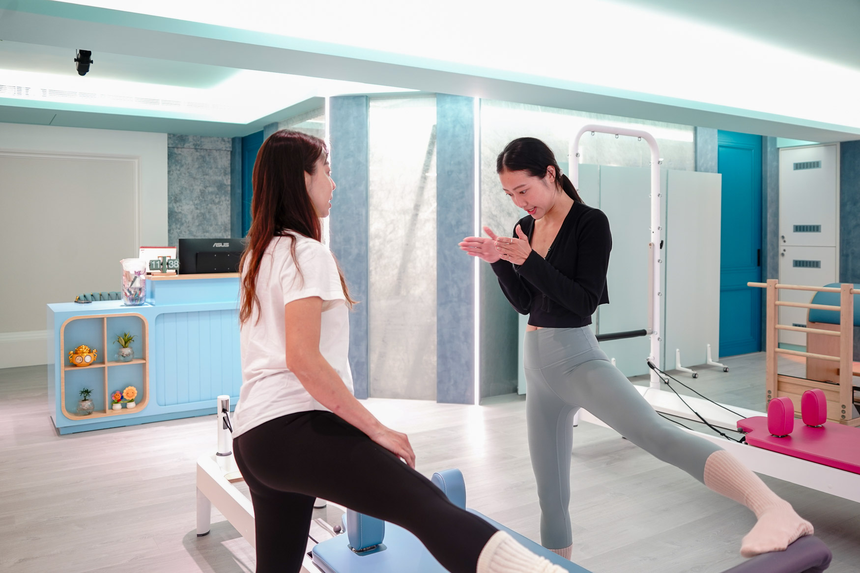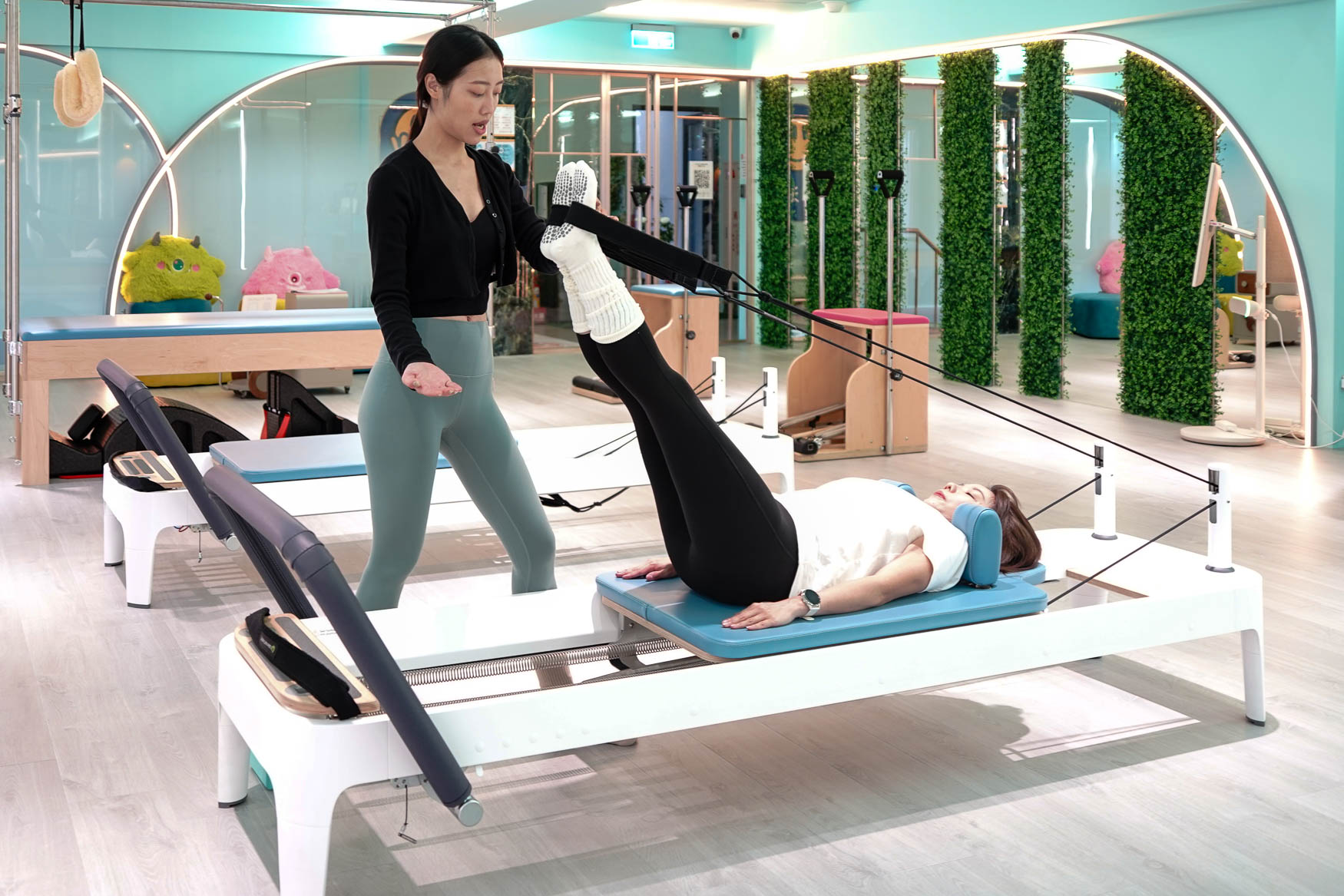 利用「Reformer核心床」針對核心、背部延,展與下肢線條做循序訓練,教練會適度調整阻力、確保每個動作都在能掌控的範圍內。