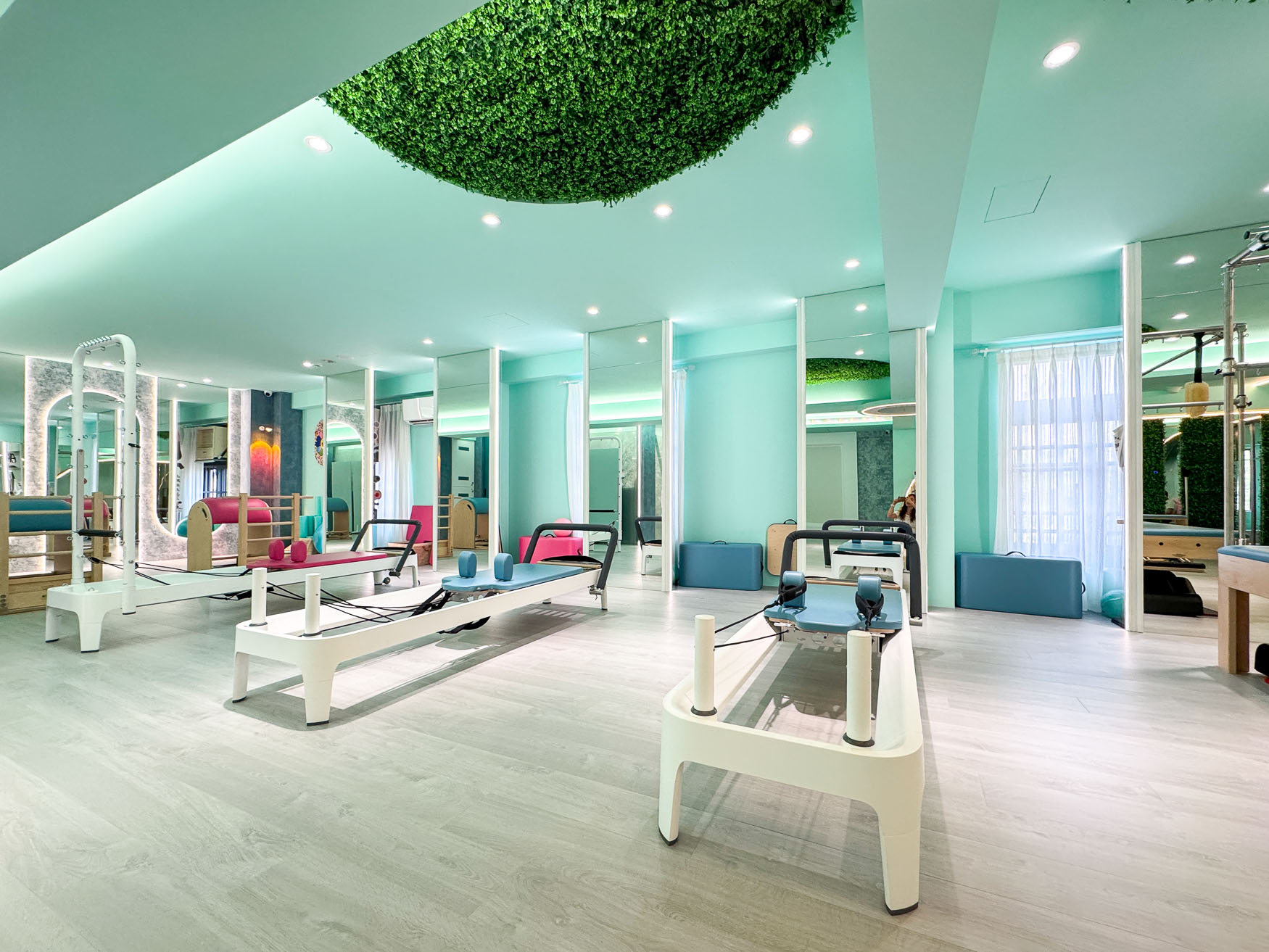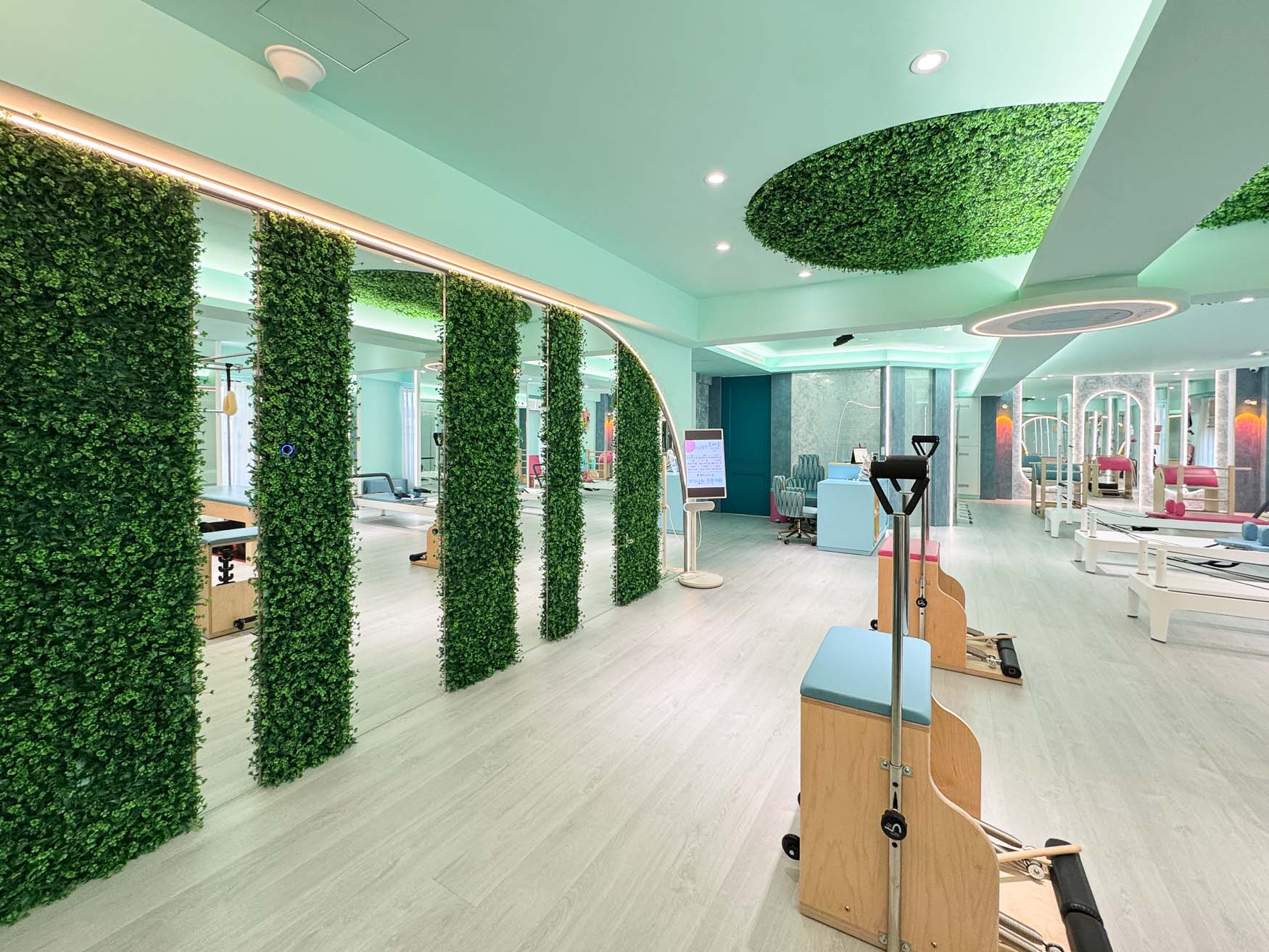 抱持著既期待又緊張,門一推開,映入眼簾的不是冷冰冰的環境,而是一間像仙境般的訓練空間:薄荷綠調的牆面、鏡面反射出的延伸感、還有明亮柔和的燈光讓整個教室氛圍相當溫馨放鬆。