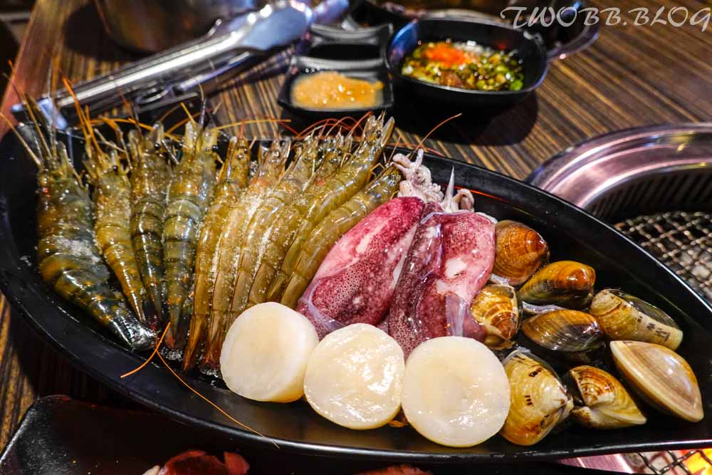 燒烤怎麼可以忘記海鮮,黑美人草蝦及泰國蝦一定要來上一輪,灑點鹽巴吃原味的鮮甜。新鮮蛤仔的湯汁來自大海的鹹香,清爽又沒有負擔也很值得點上幾輪。