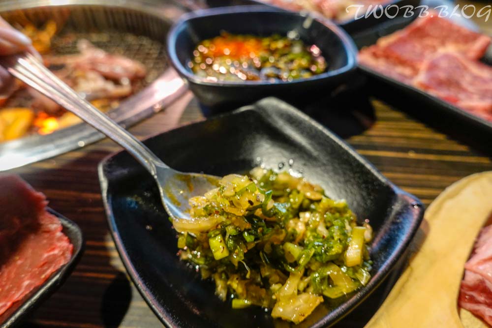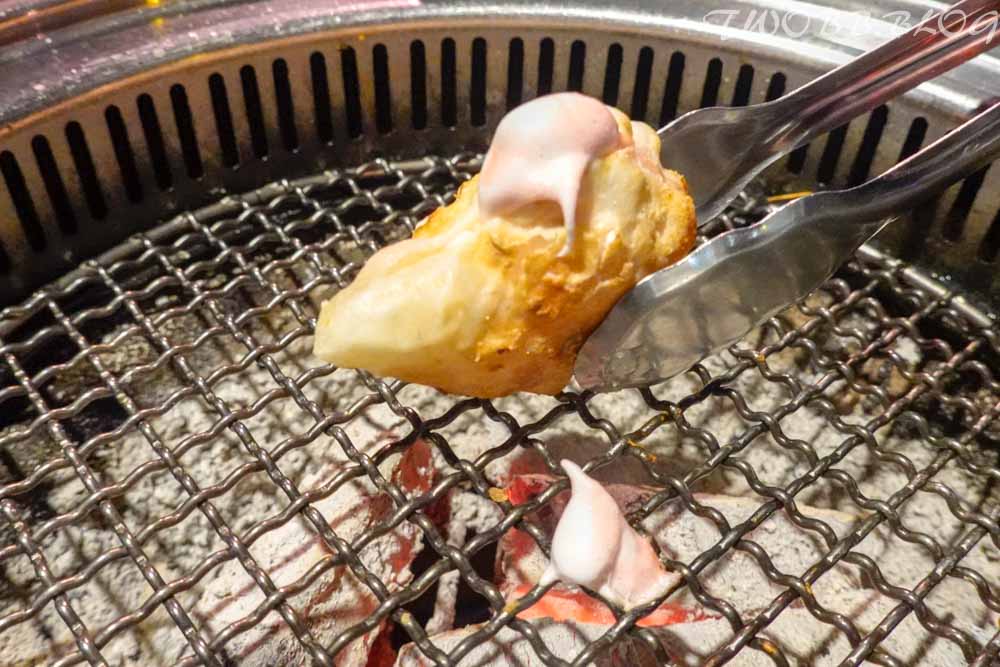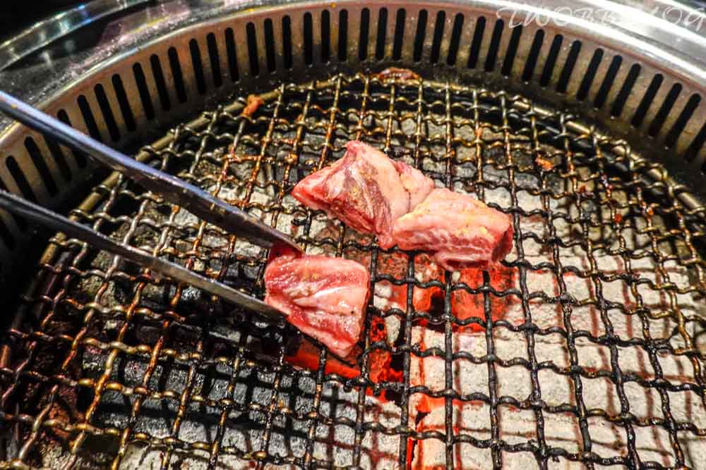燒肉熱愛者看到一盤盤的肉品應該是迫不及待想開烤了,無論喜歡片狀、有厚度的甚至骰子牛,好客通通提供。充滿油花的牛肉伴隨炭火加持下,鎖住的鮮美肉汁還有燒肉味,沾上味增醬,完勝!