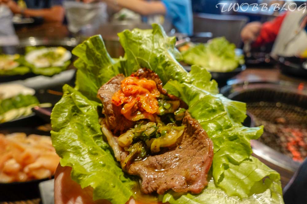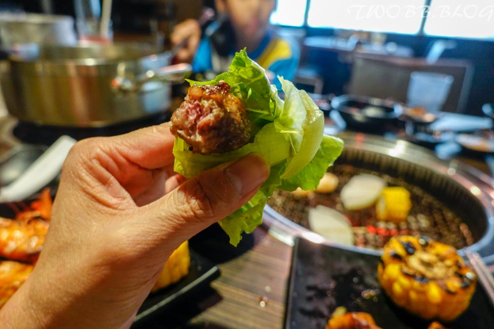 好吃的食材烤一下下就可以入口了,鮮香軟嫩,就連包著生菜也相當的好吃呢!生菜加上燒肉就是絕配二字,爽脆的生菜還能帶走燒肉的油膩,實在讓人不禁多吃幾份。