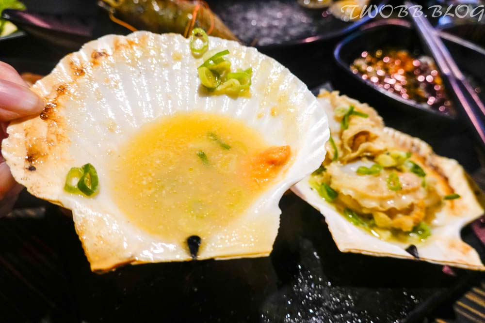 新鮮扇貝搭配青蔥,還有整塊奶油跟著一起烤,與海鮮自然的鮮甜湯汁融合在一起,奶油濃郁滑順甘口,這湯超適合一飲而盡,不要浪費掉了。烤好的扇貝加點海鹽就很美味!