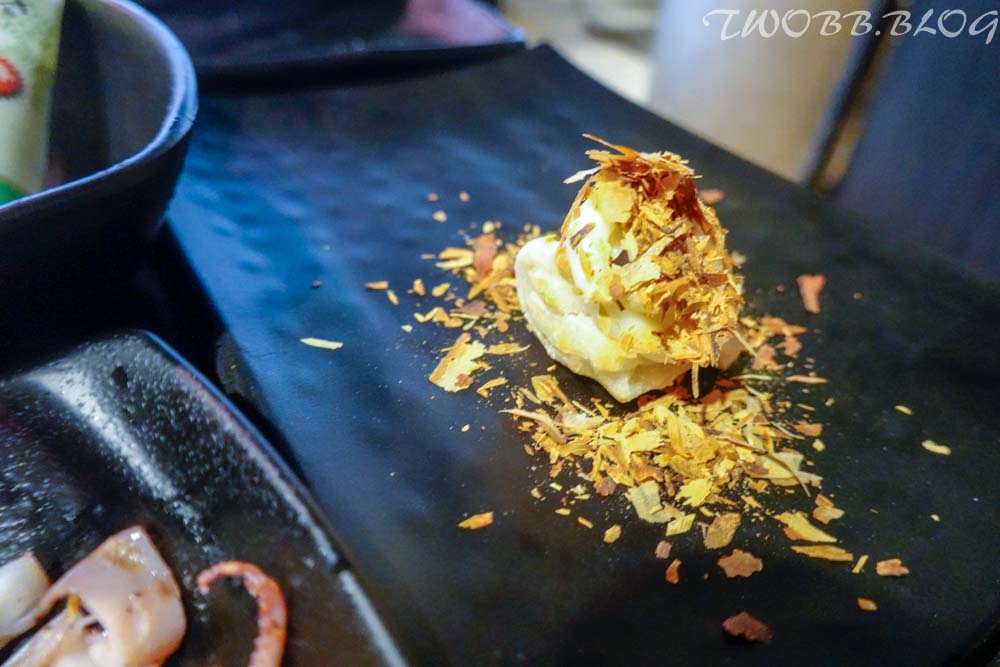吃了幾輪下來肚子真的有點飽了,來點清爽的蔬菜平衡一下味蕾,節瓜及香菇烤過後相當好吃,海鹽撒下去非常加分。調整一下味蕾後,就準備為五臟廟進貢甜點啦~