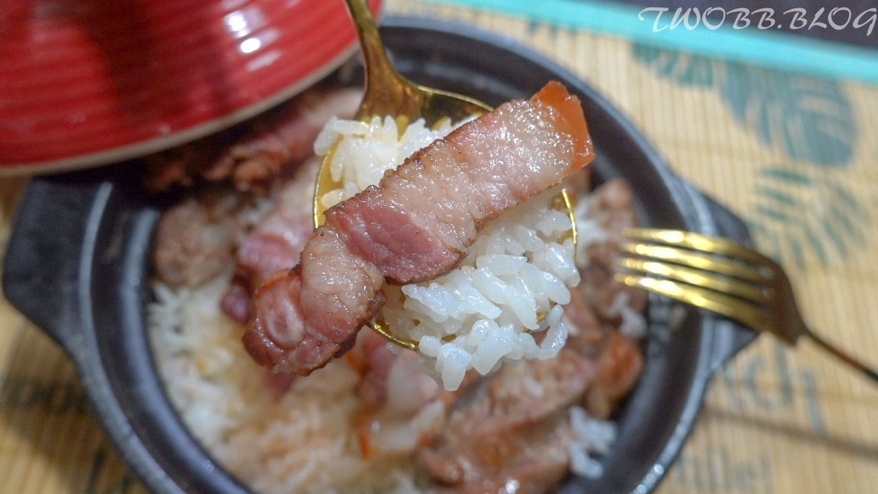 臘肉不拿來做臘味蒸飯實在有點可惜阿,所以還是不免俗來一道。但傳統的臘味飯味道比較重而且還有臘腸,最後還會淋上醬油。為了不要過多的負擔,這邊就沒有再額外淋上醬油,完全使用臘肉及香腸本身的肉汁滲透米飯中,臘肉油香味完全與米飯融合實在是太讚啦!