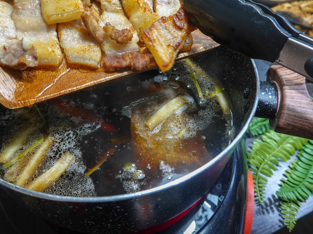 6.放入剛剛煎好的五花肉及其他魯味食材