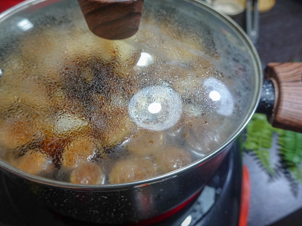 若家裡沒有萬用鍋也可以直接放入水與食材繼續蓋鍋小火燉煮約60分鐘。