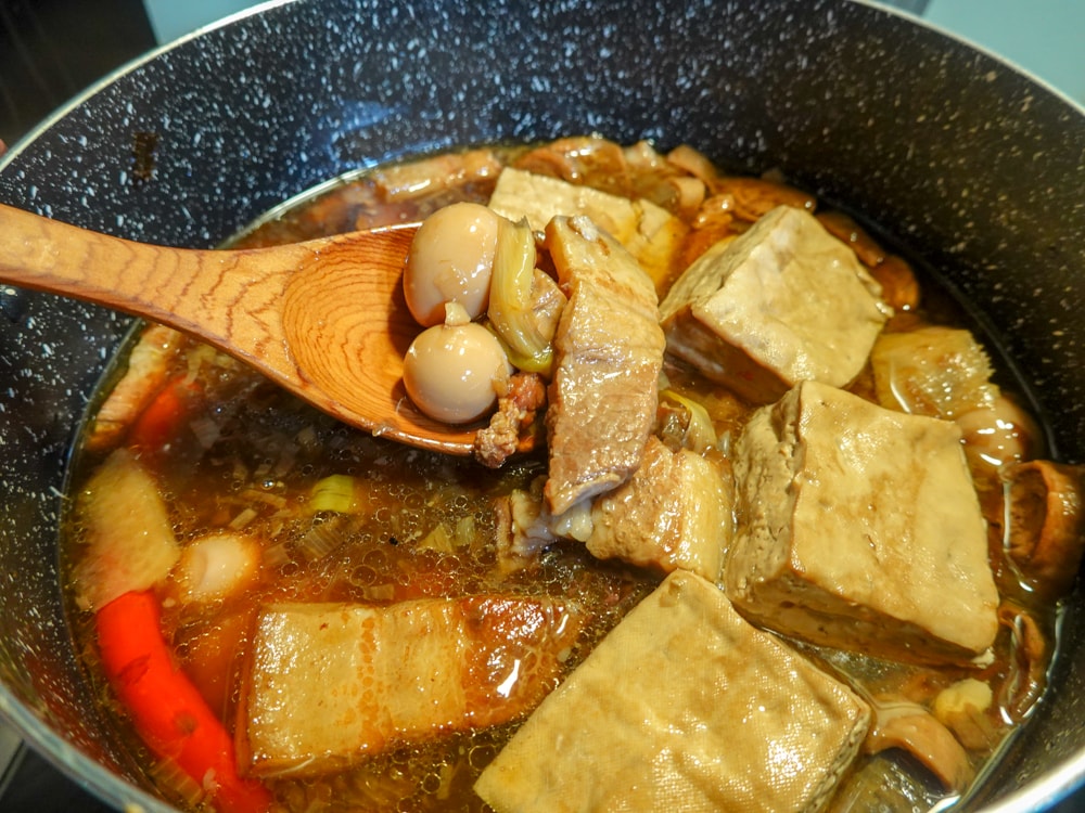 一鍋滷味輕輕鬆鬆就完成,有豆腐、鷓鴣鳥蛋還有五花肉,搭配白飯就是一道經典美味。加上油蔥酥與滷包的香氣,整鍋綜合魯味香氣四溢,可以吃上好幾天。