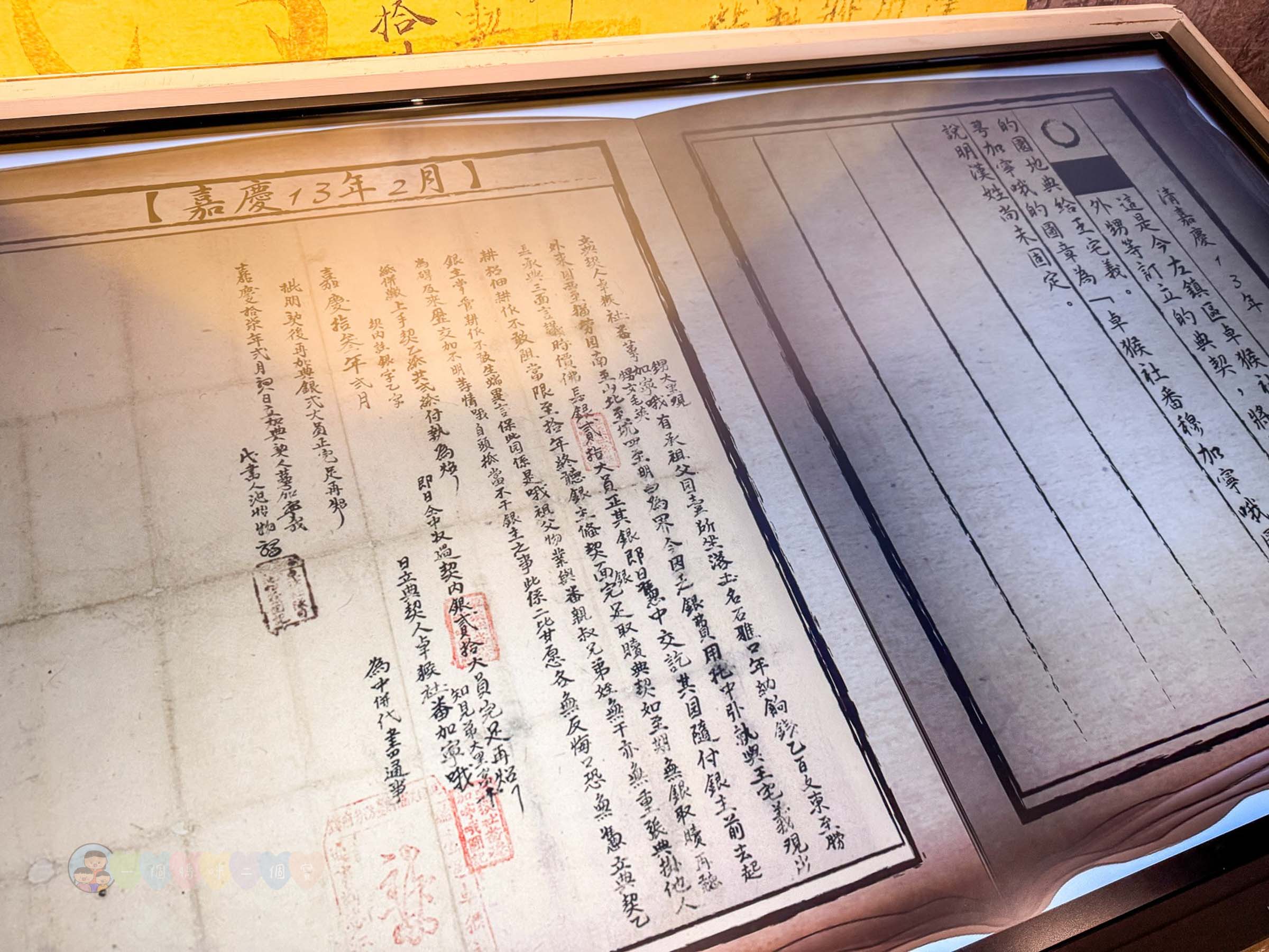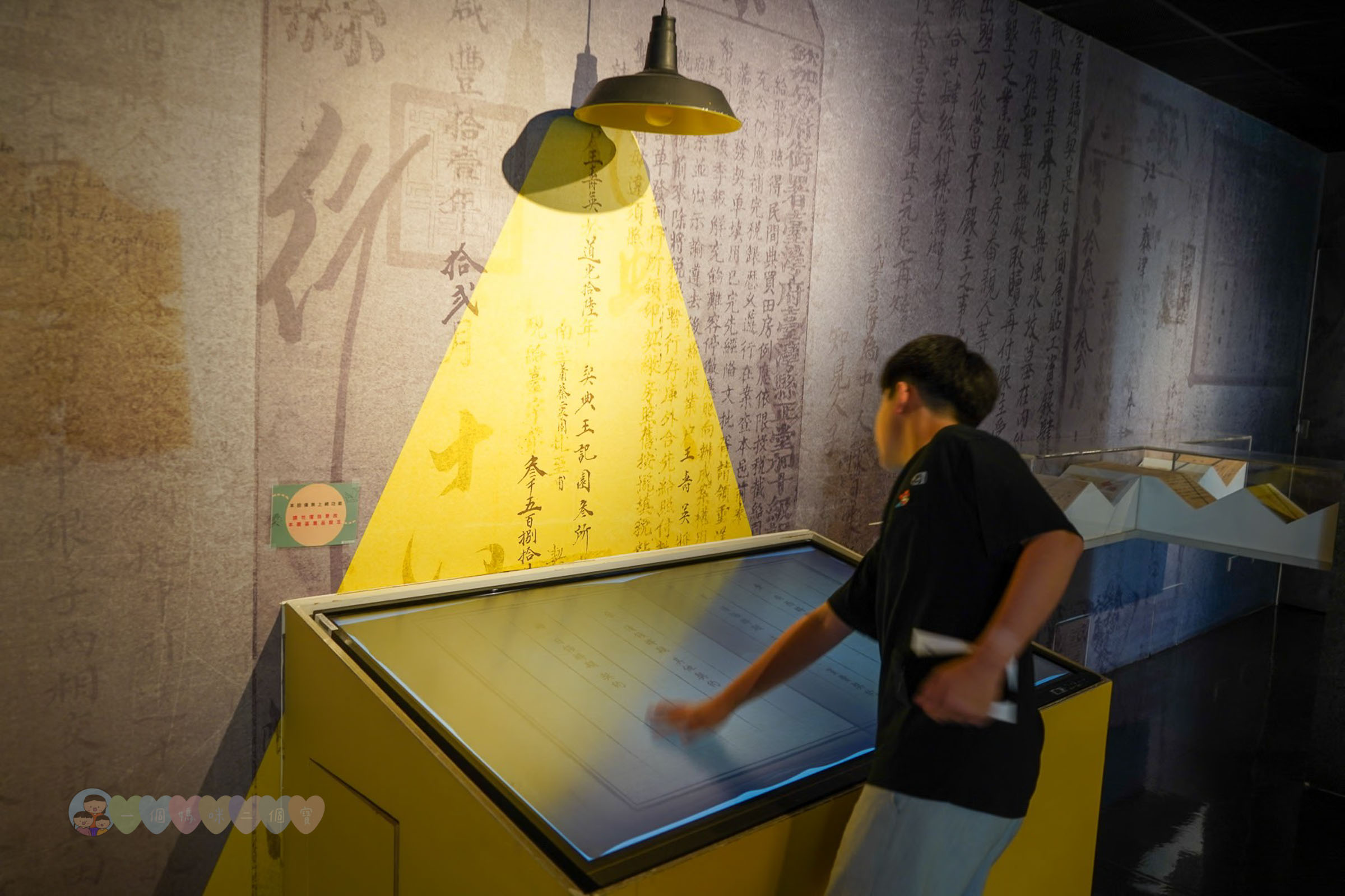 這種透過投影呈現的書本翻閱互動,展示內容有不少當時的公文、借條、合約、執照等,也是相當有趣。