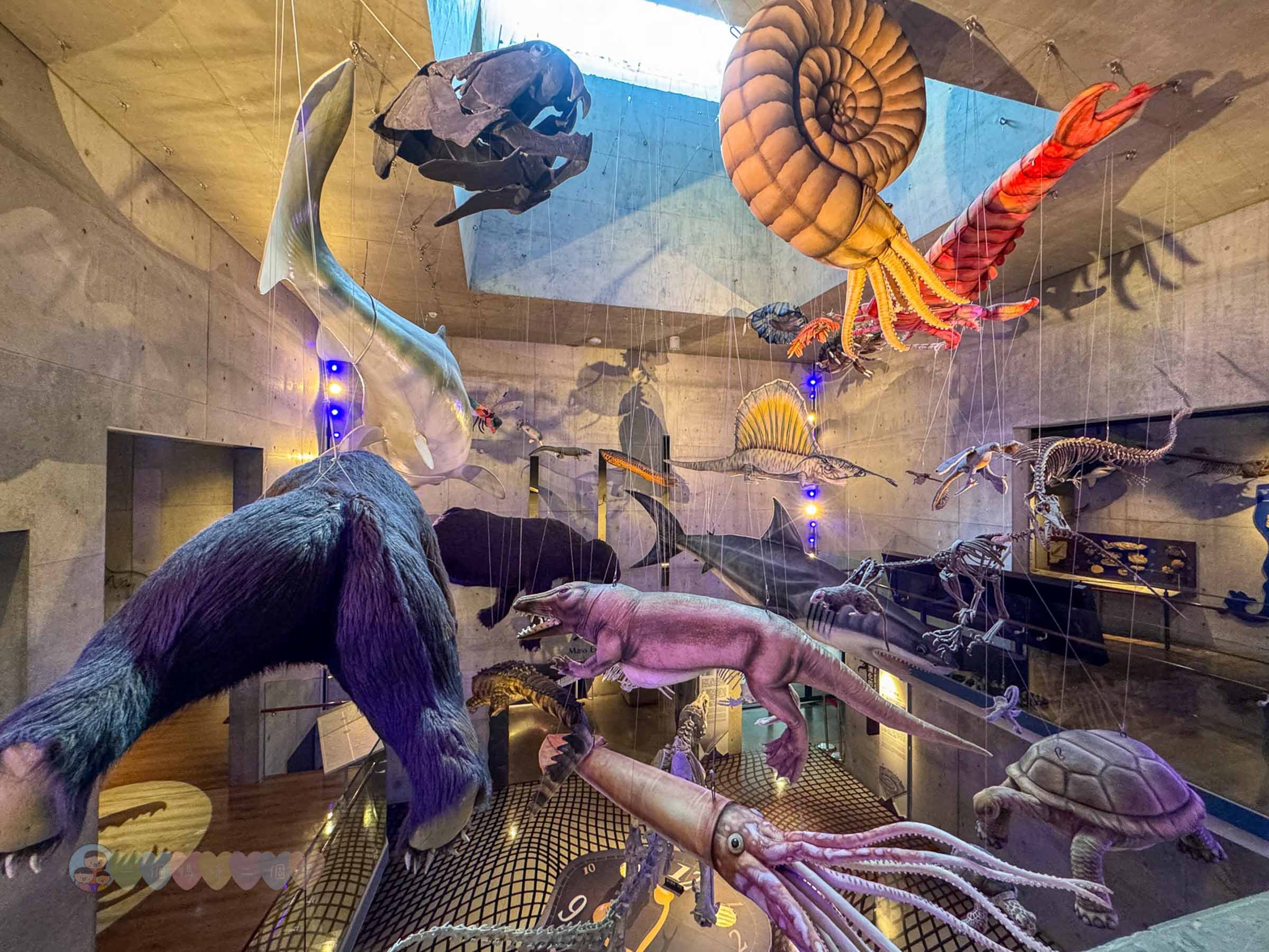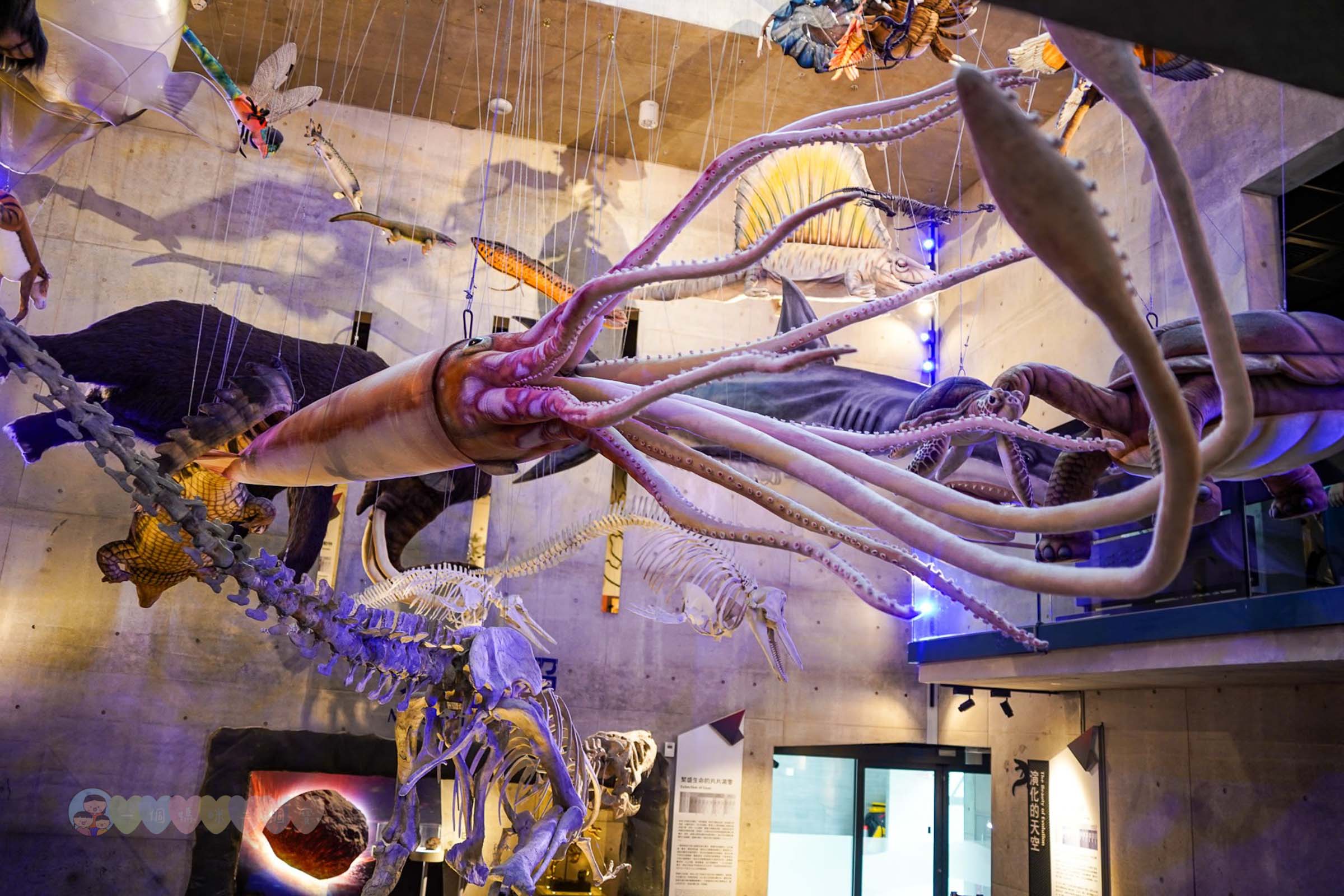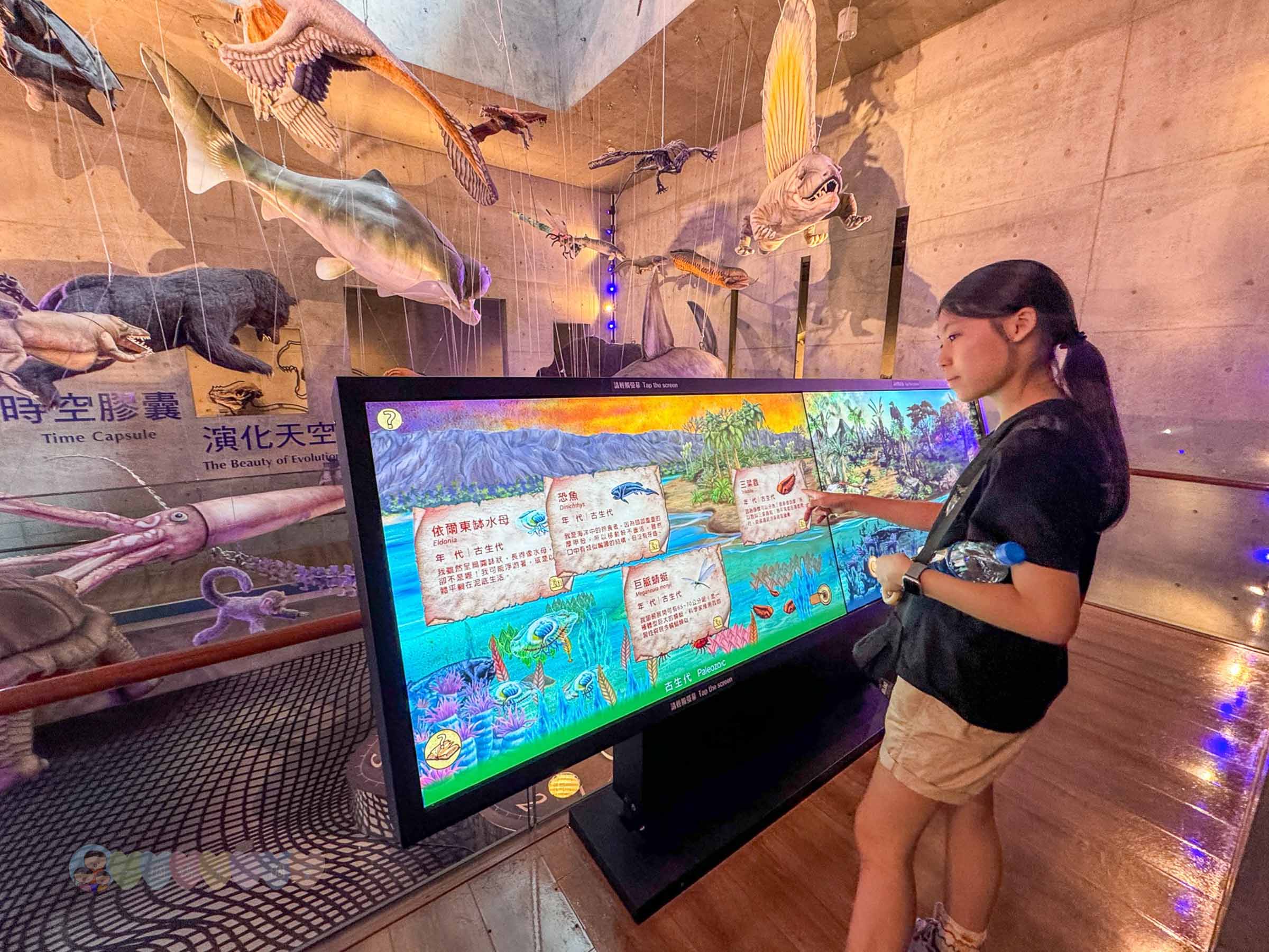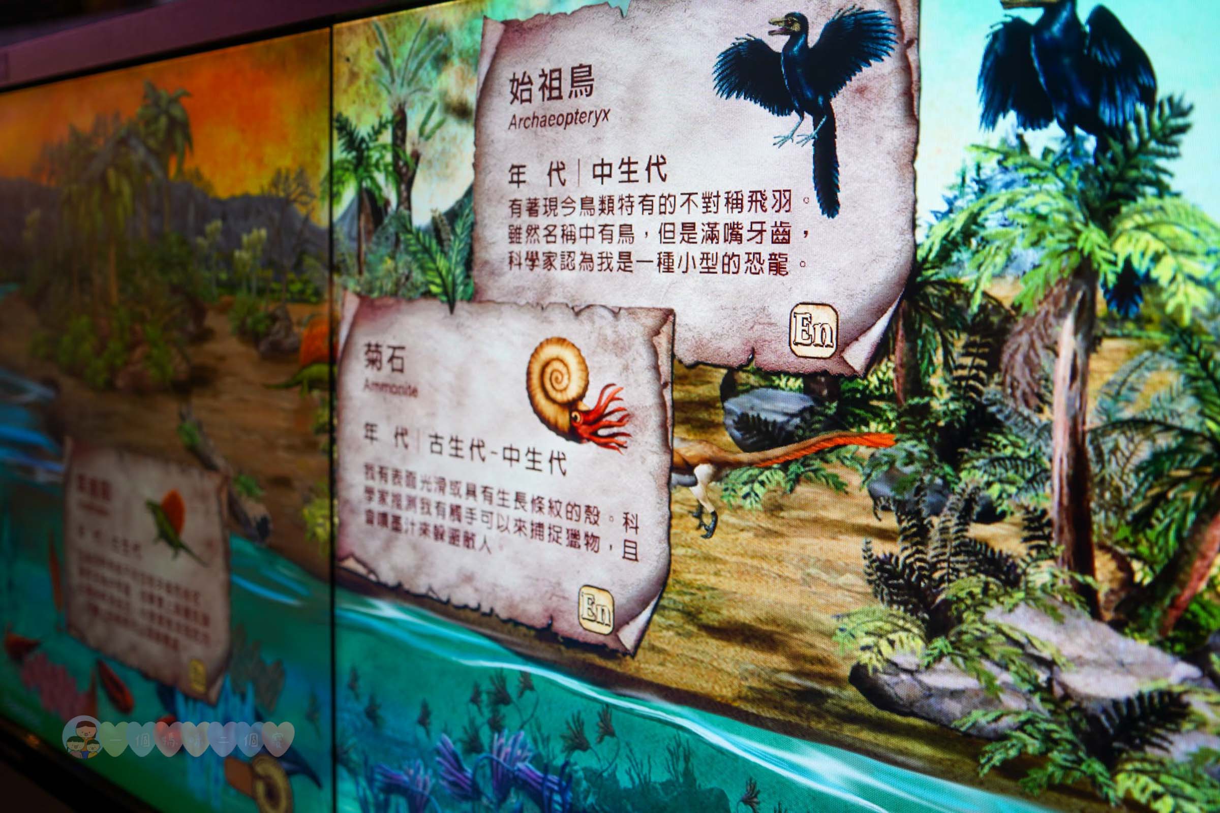 小朋友進入「生命演化館」後應該會驚呼連連,瞬間來到寒武紀與史前動物、恐龍相見,甚至可以透過互動設施個別了解大王魷魚、始祖鳥、菊石等詳細資料,非常有趣。