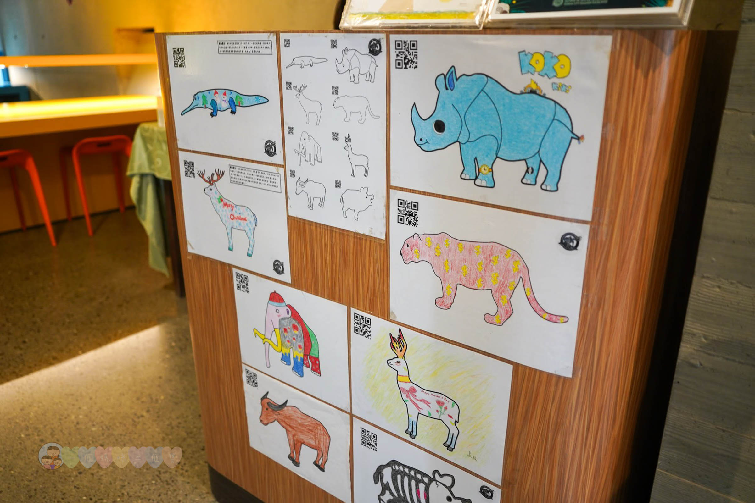 這裡有一處親子diy空間,挑一張喜歡的動物發揮創意彩繪一番,也蠻好殺時間的。