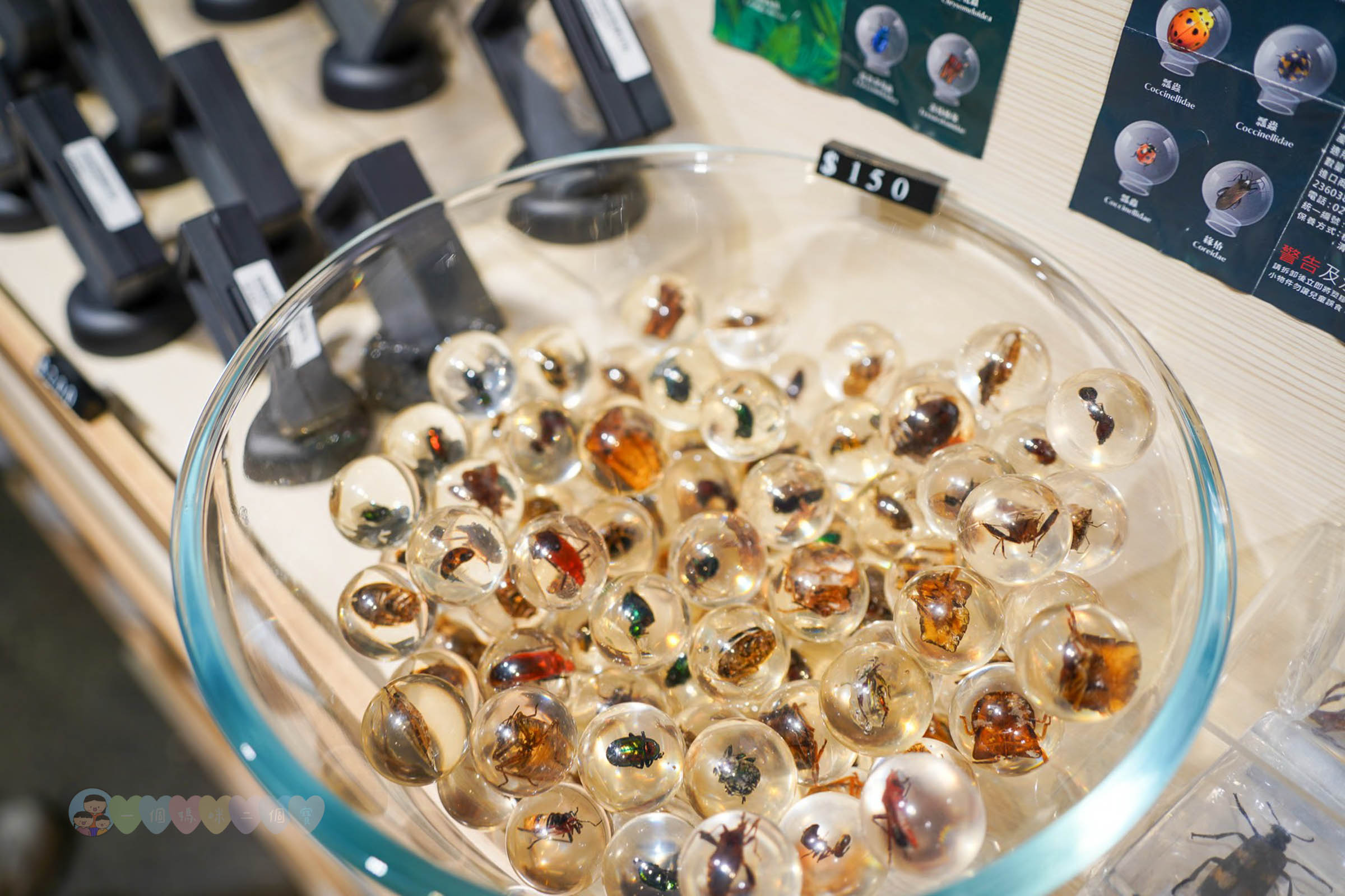 各式各樣蟲蟲標本、透明生物標本瓶、天然礦石等,一不小心就會手滑買買買。
