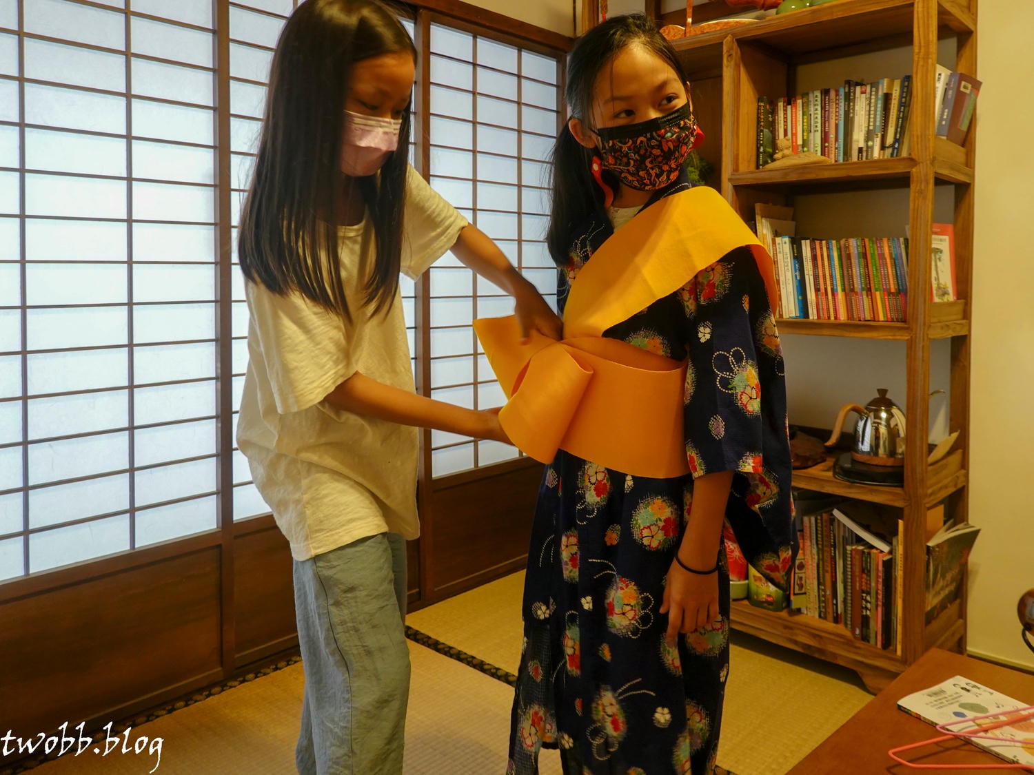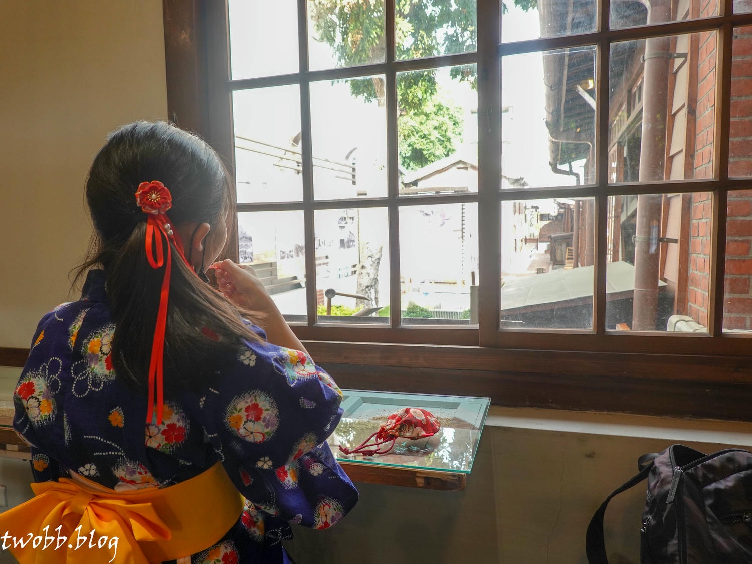 在導覽人員的介紹下,二位小朋友興致勃勃的入內準備來個「浴衣遊園樂」