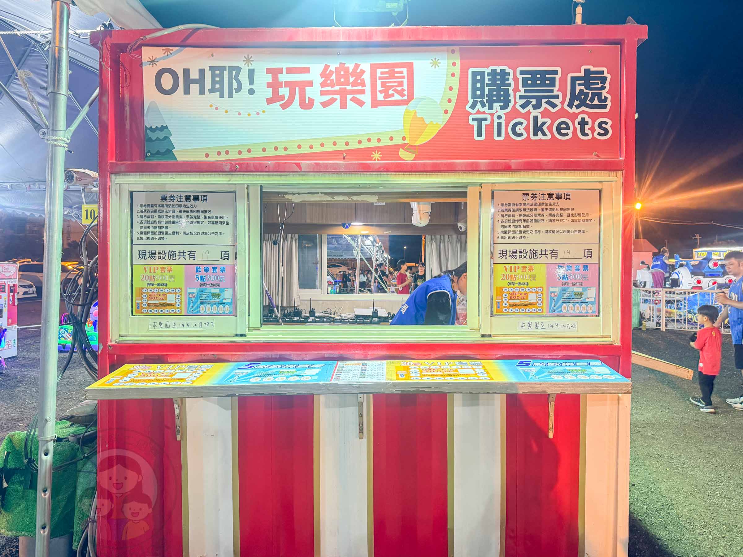 《中壢仁海宮夜市》現場共有19項遊樂設施,購買票券方式: