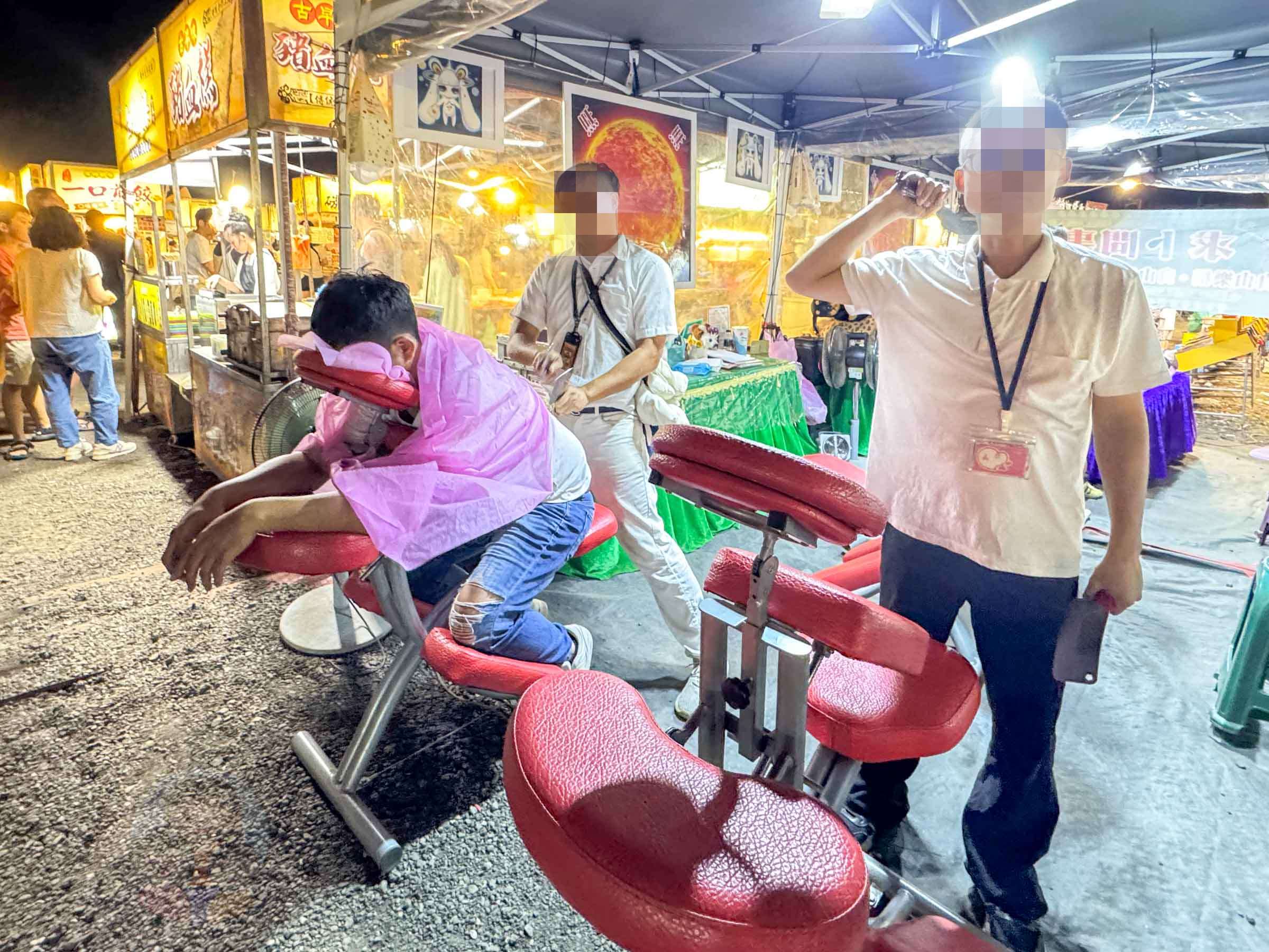 原本以為是提供半身按摩服務,走近一看原來是超特別的刀療,只見師傅手起刀落,連叡哥好奇的問這樣不會砍到嗎?(笑)