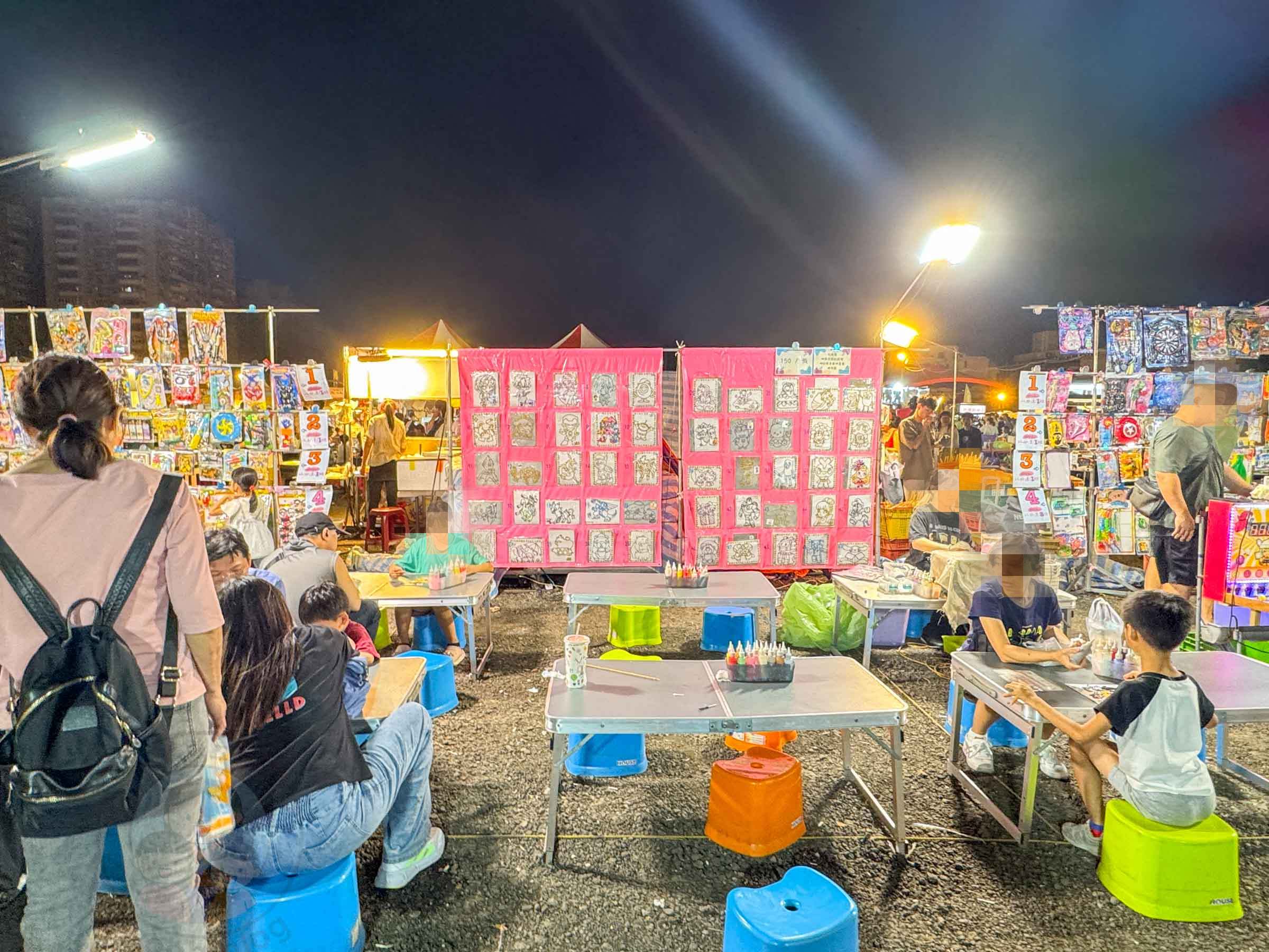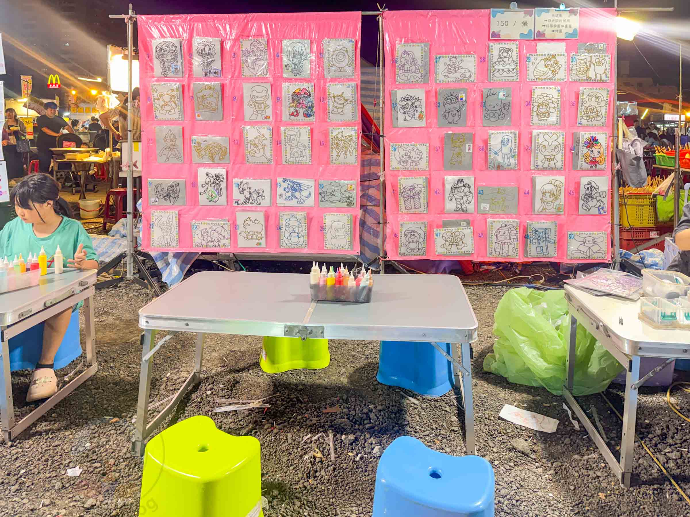 不論是打彈珠、滾球、套圈圈、還有小小朋友喜歡玩的烤畫都很適合坐下來殺時間。
