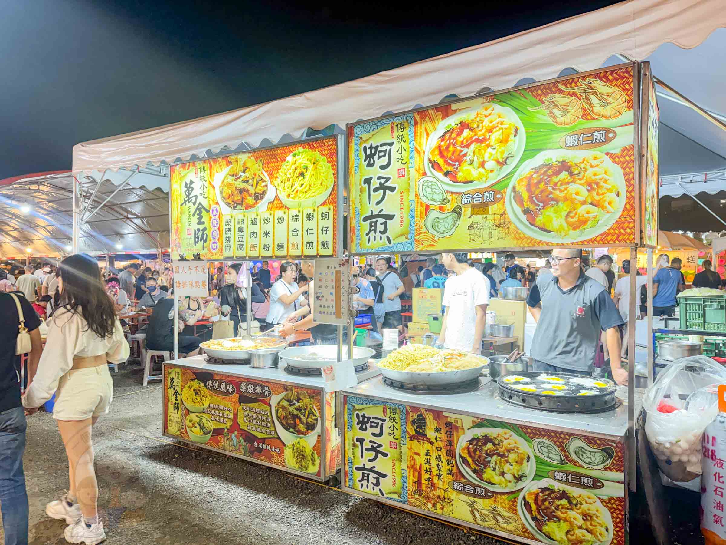 傳統夜市小吃蚵仔煎、炒米粉同樣座無虛席,但很可惜幾圈繞下來,發現能夠坐下來好好品嘗的店家不算多。
